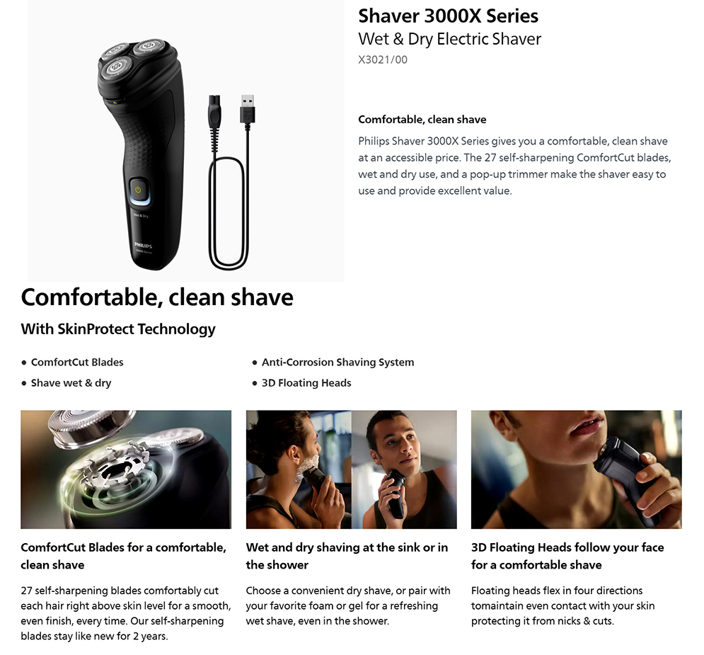 Philips X3021/00 Wet & Dry Electric Shaver 3000X Series for Men