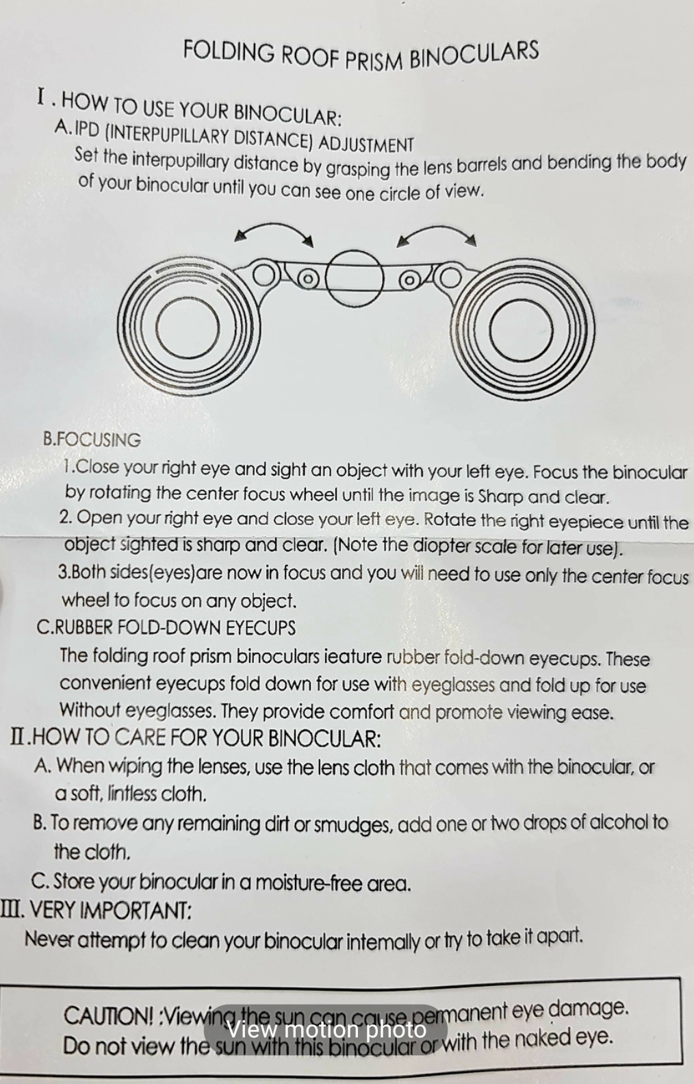 - 1X30×60 binoculars
