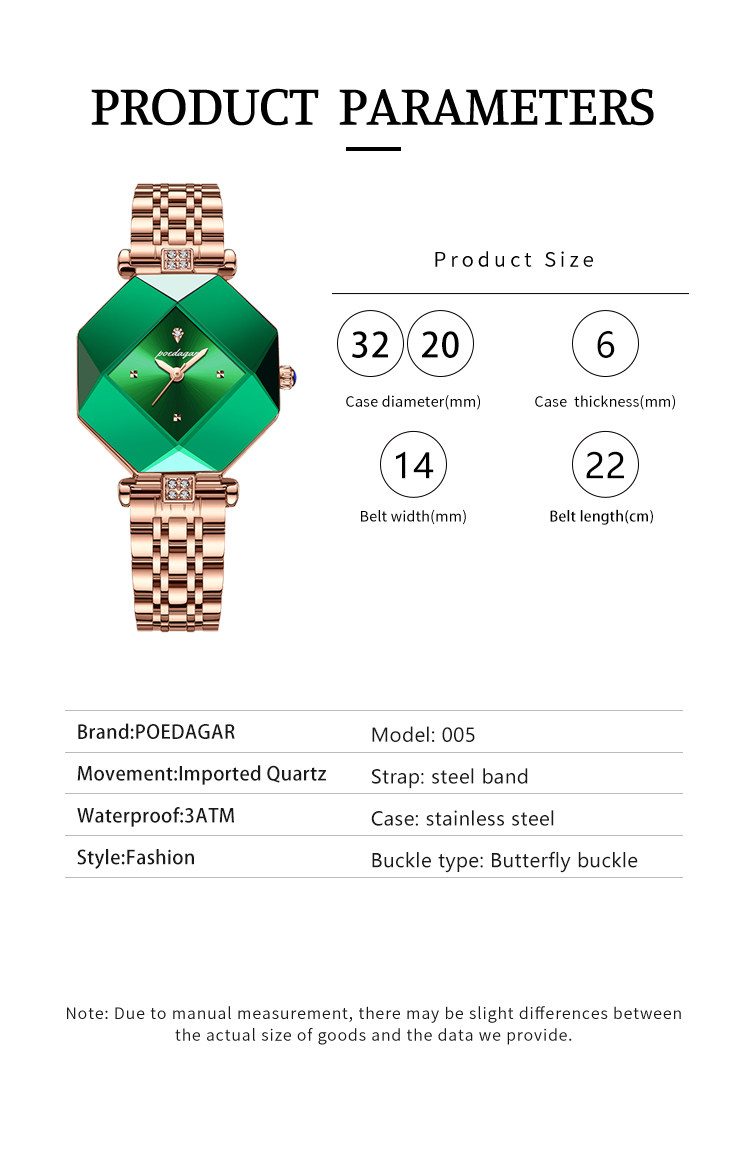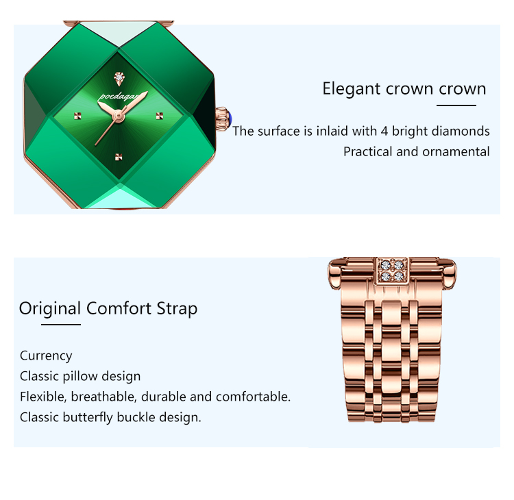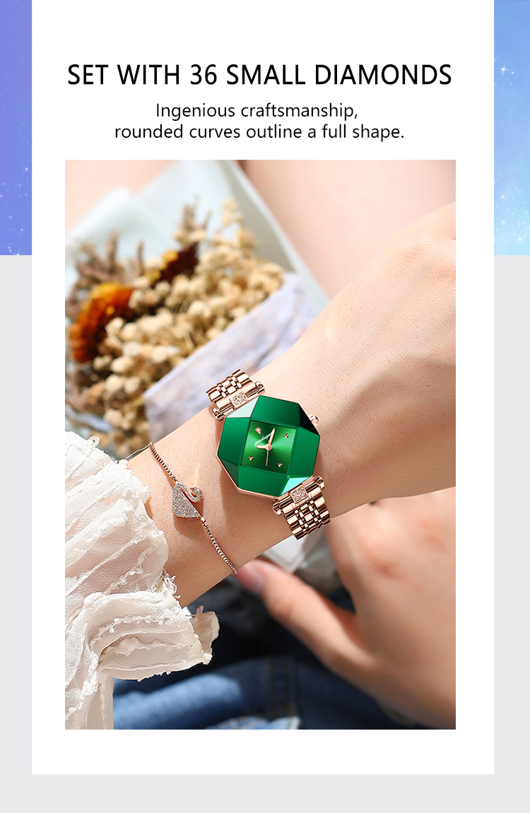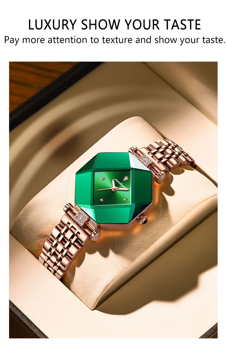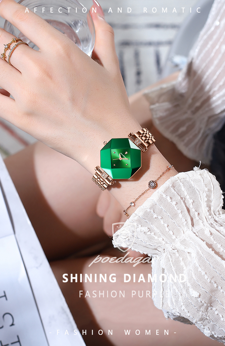 Poedagar PO005 RoseGold Stainless Steel Analog Wrist Watch For Women - Green & RoseGold