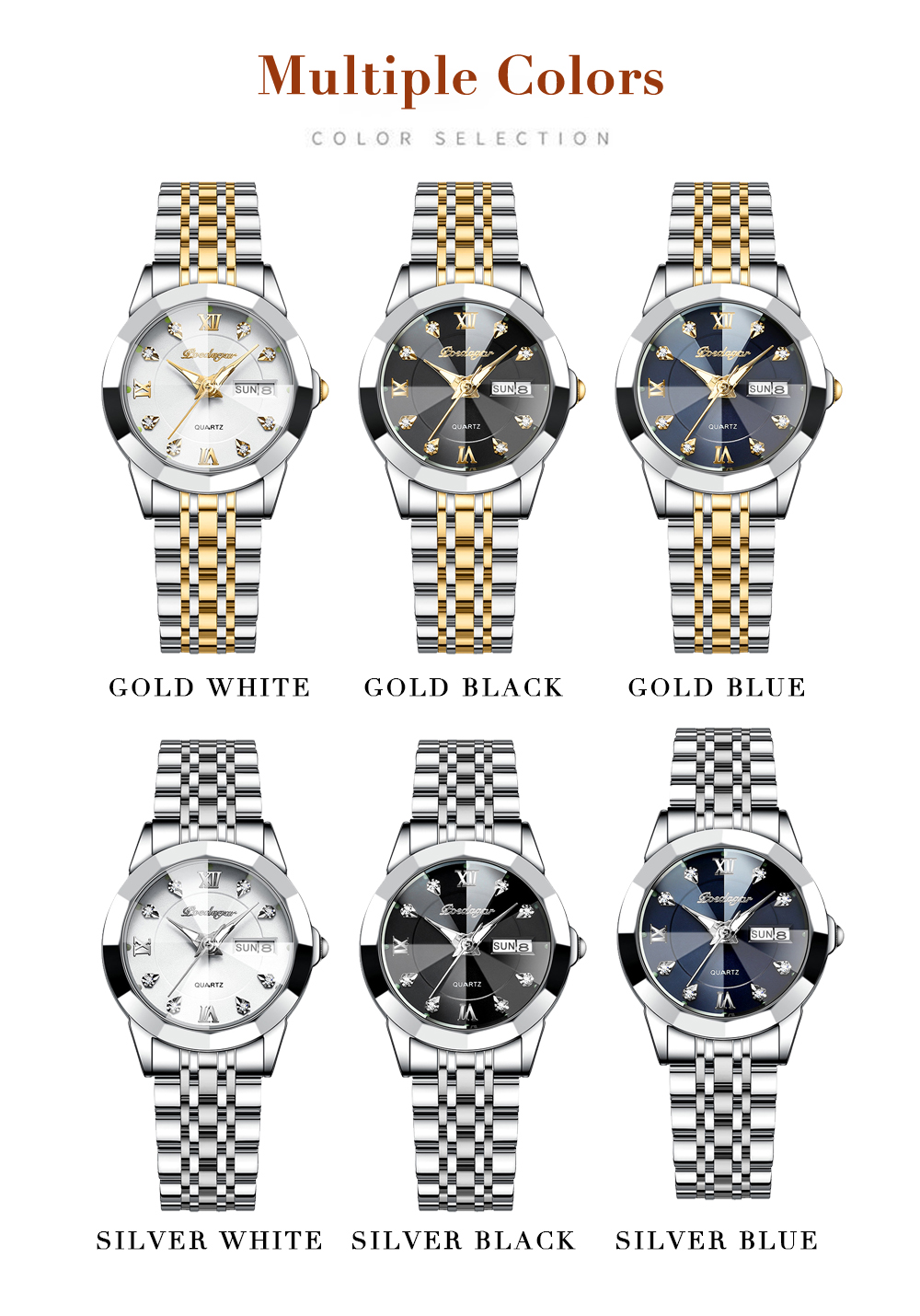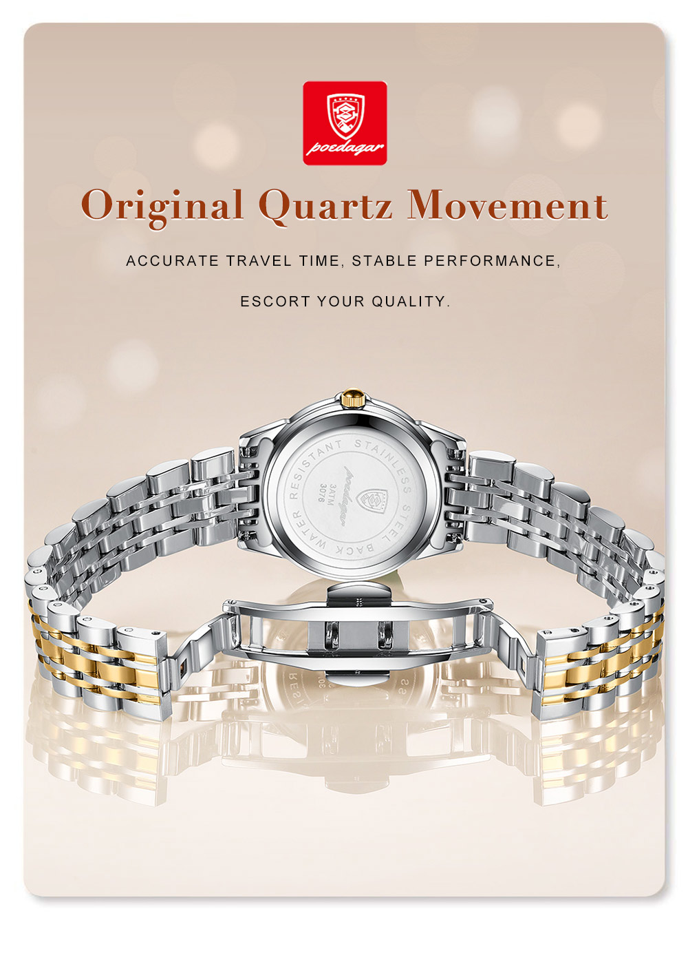 Poedagar PO3076 Silver & Golden Two Tone Stainless Steel Analog Wrist Watch For Women - RoyalBlue & Silver & Golden