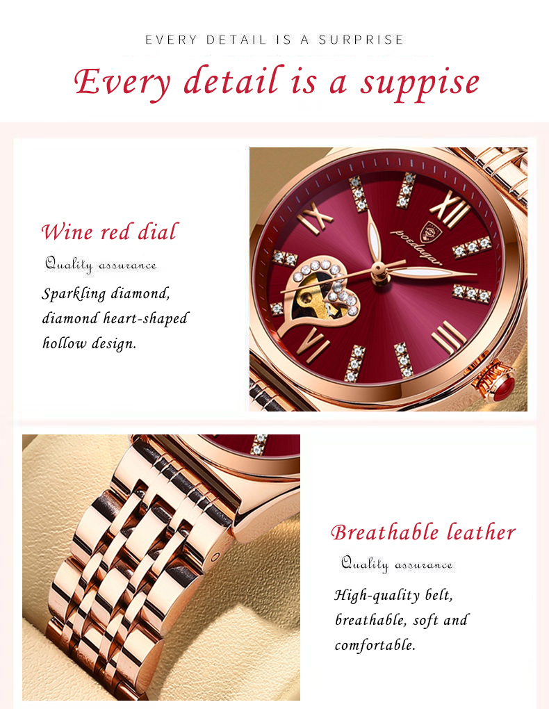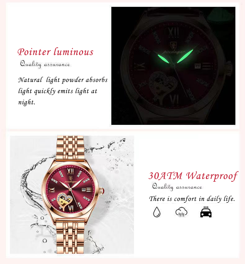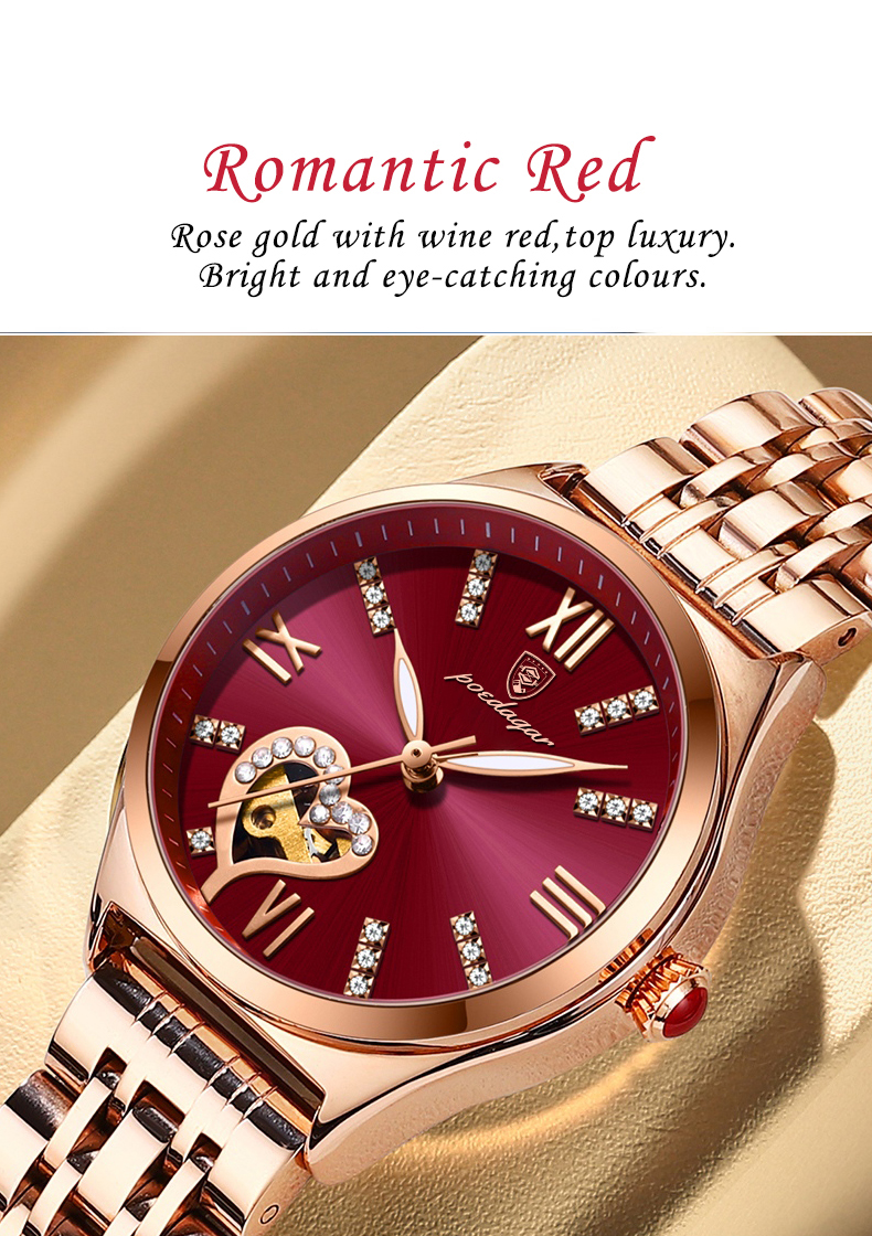Poedagar PO320S RoseGold Stainless Steel Analog Wrist Watch For Women - Red & RoseGold