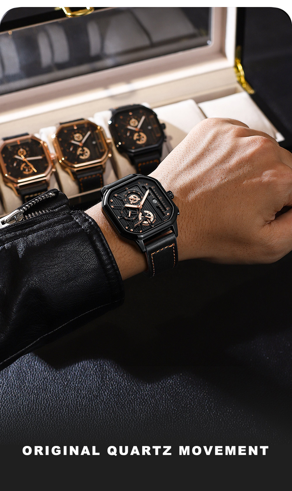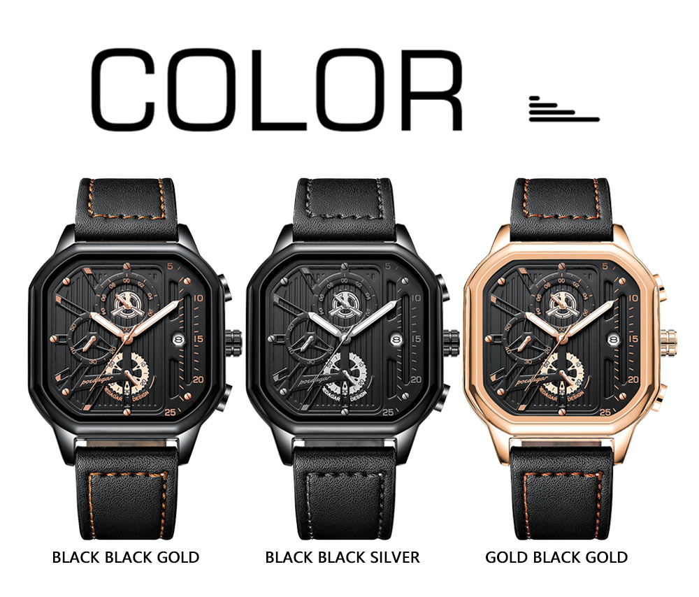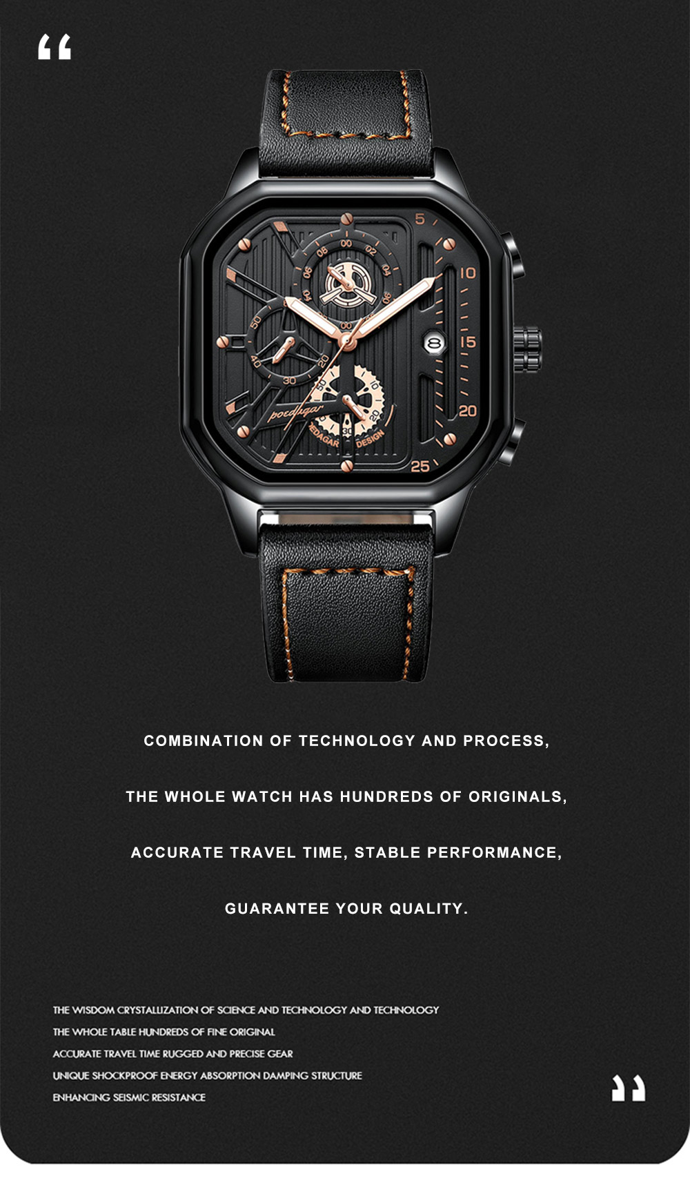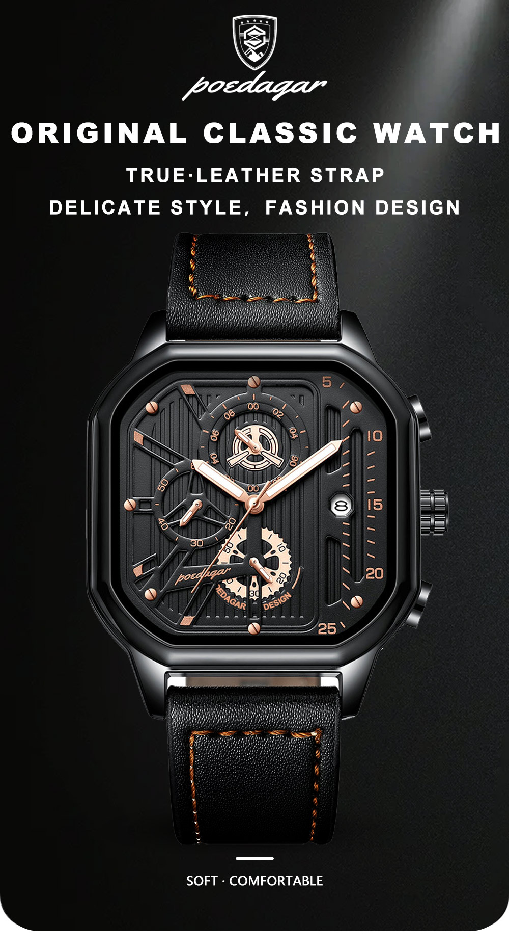 Poedagar PO628L Black PU Leather Chronograph Wrist Watch For Men - Golden & Black