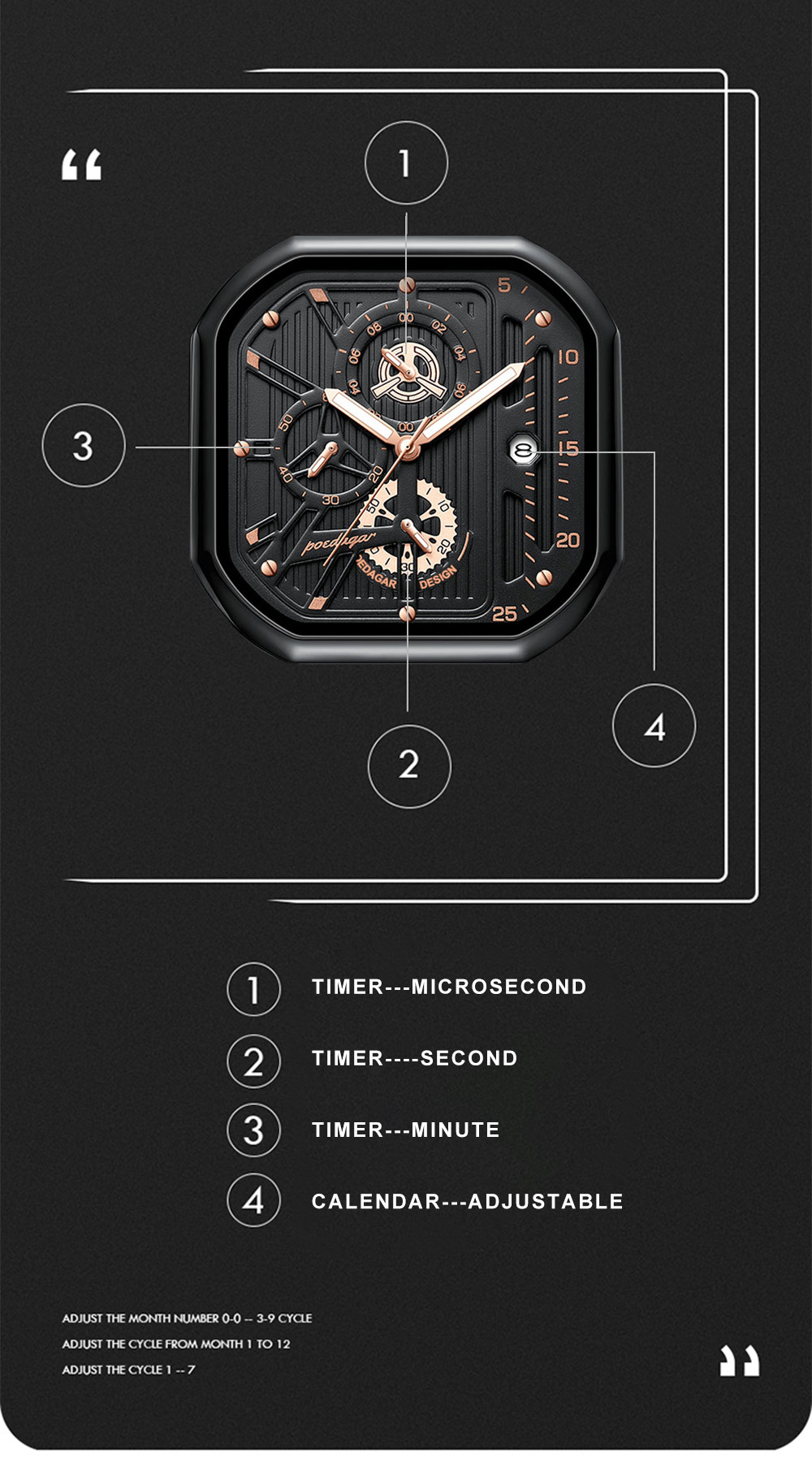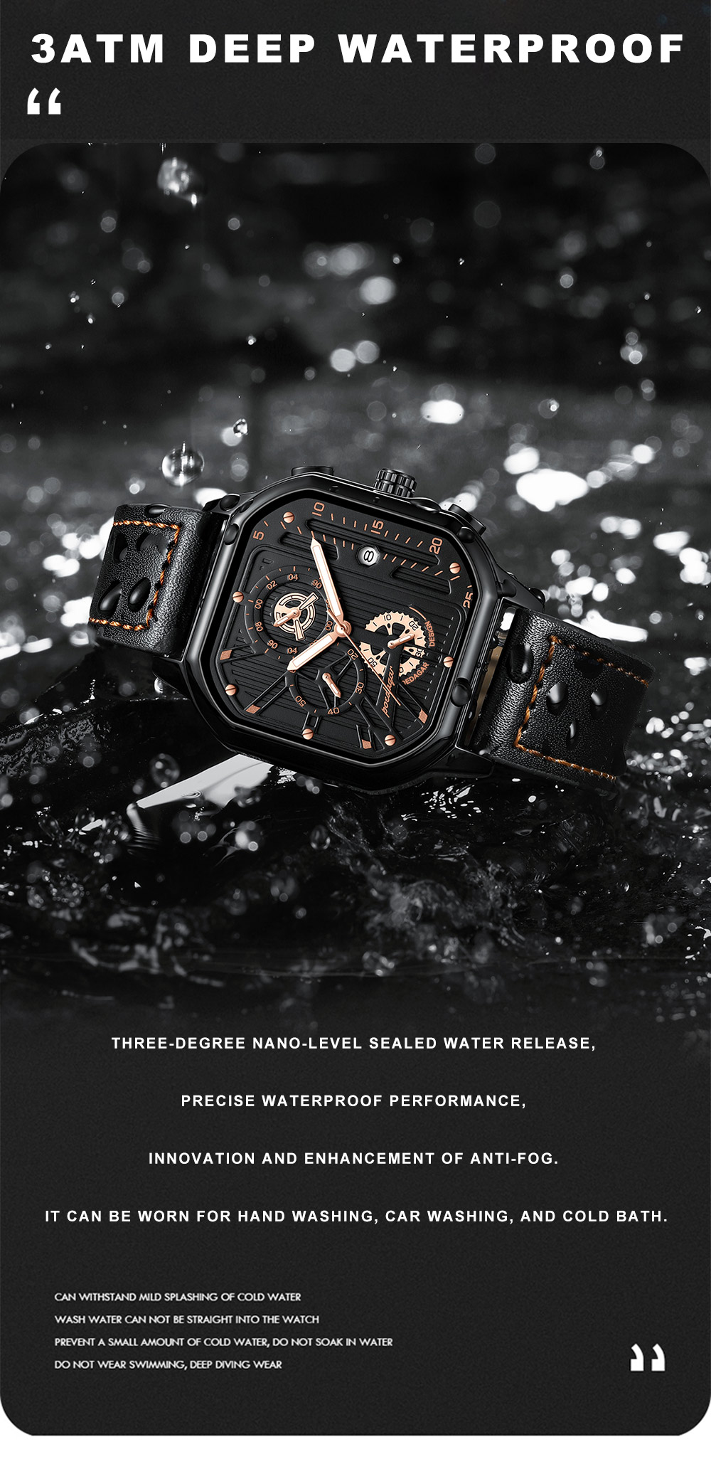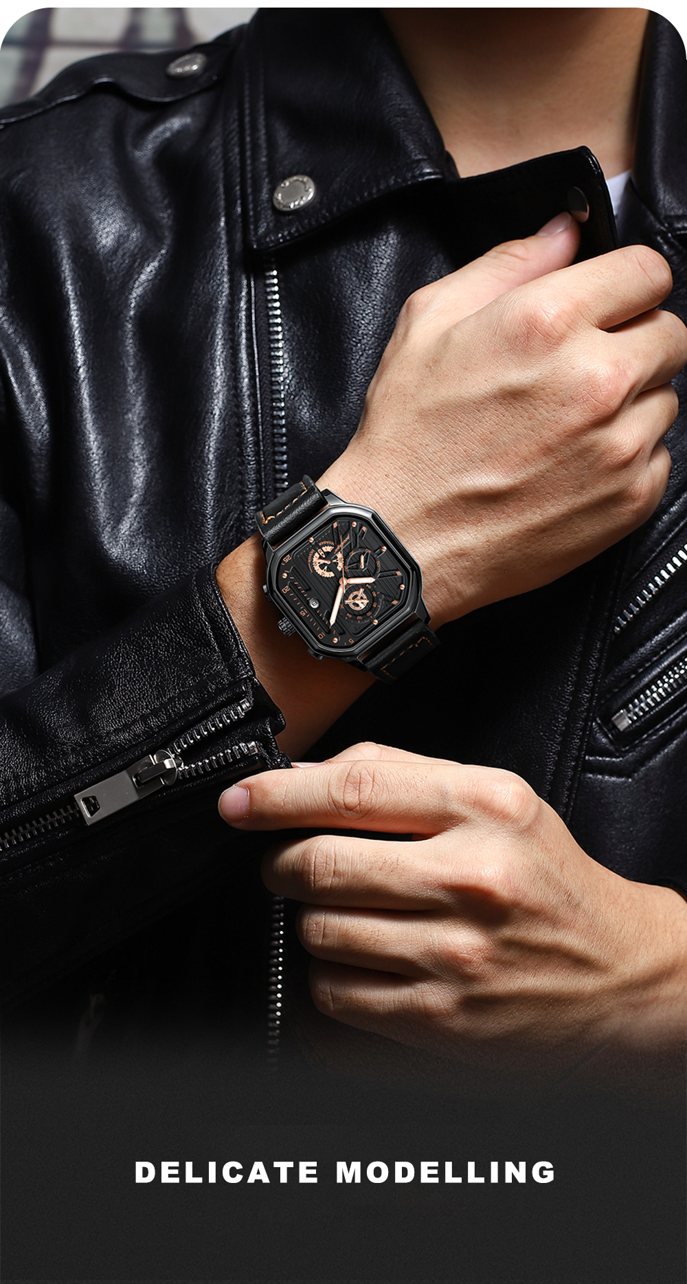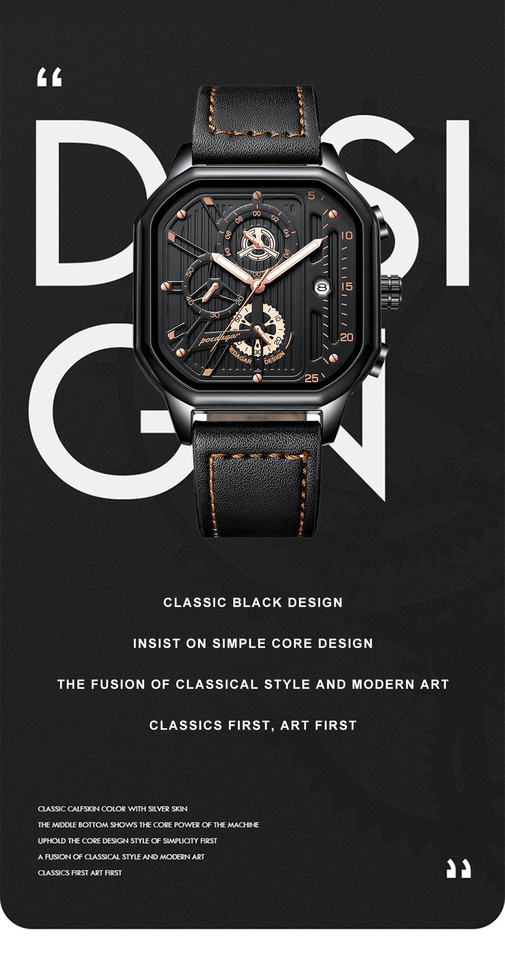 Poedagar PO628L Black PU Leather Chronograph Wrist Watch For Men - Golden & Black