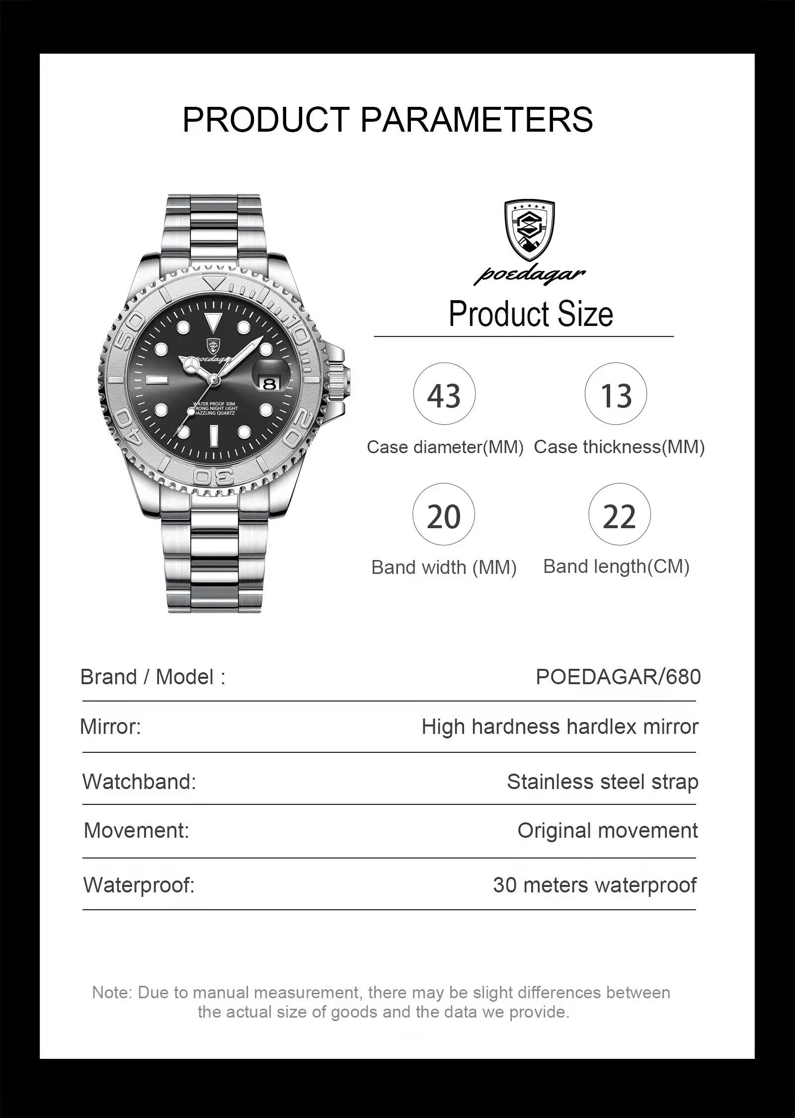 Poedagar PO680 Stainless Steel Chronograph Wrist Watch For Men