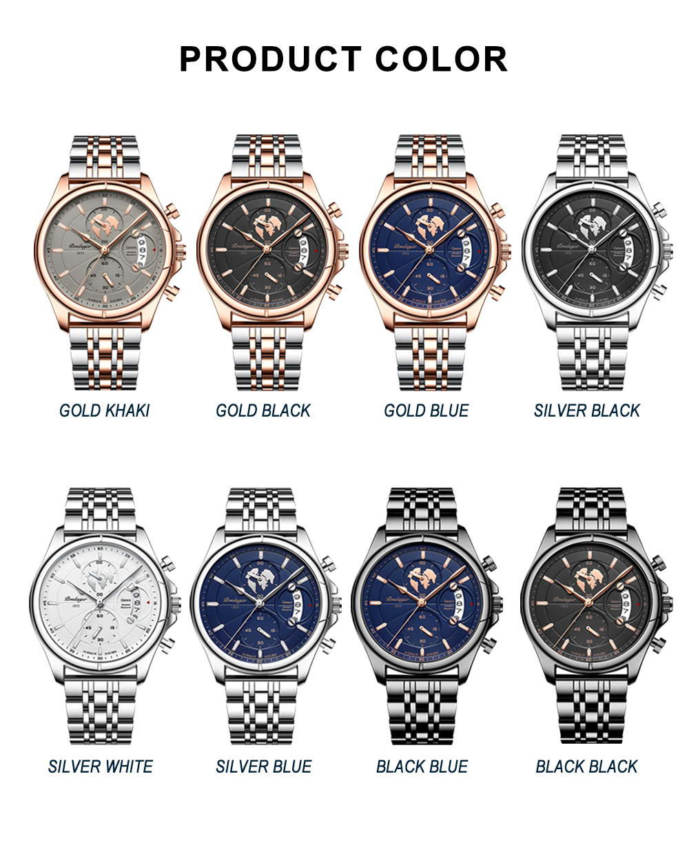 Poedagar PO802S Black Stainless Steel Analog Wrist Watch For Men - Black