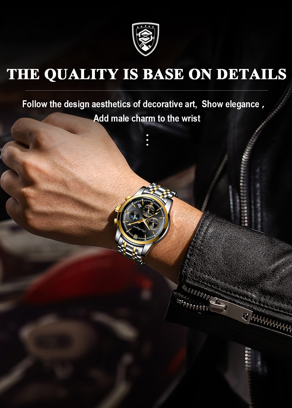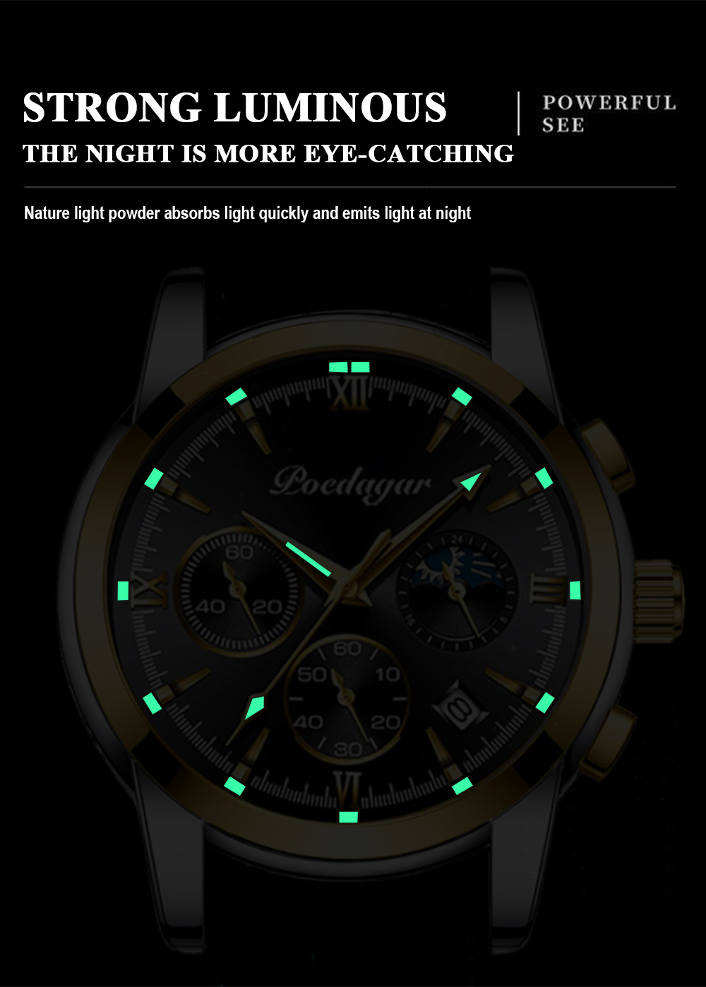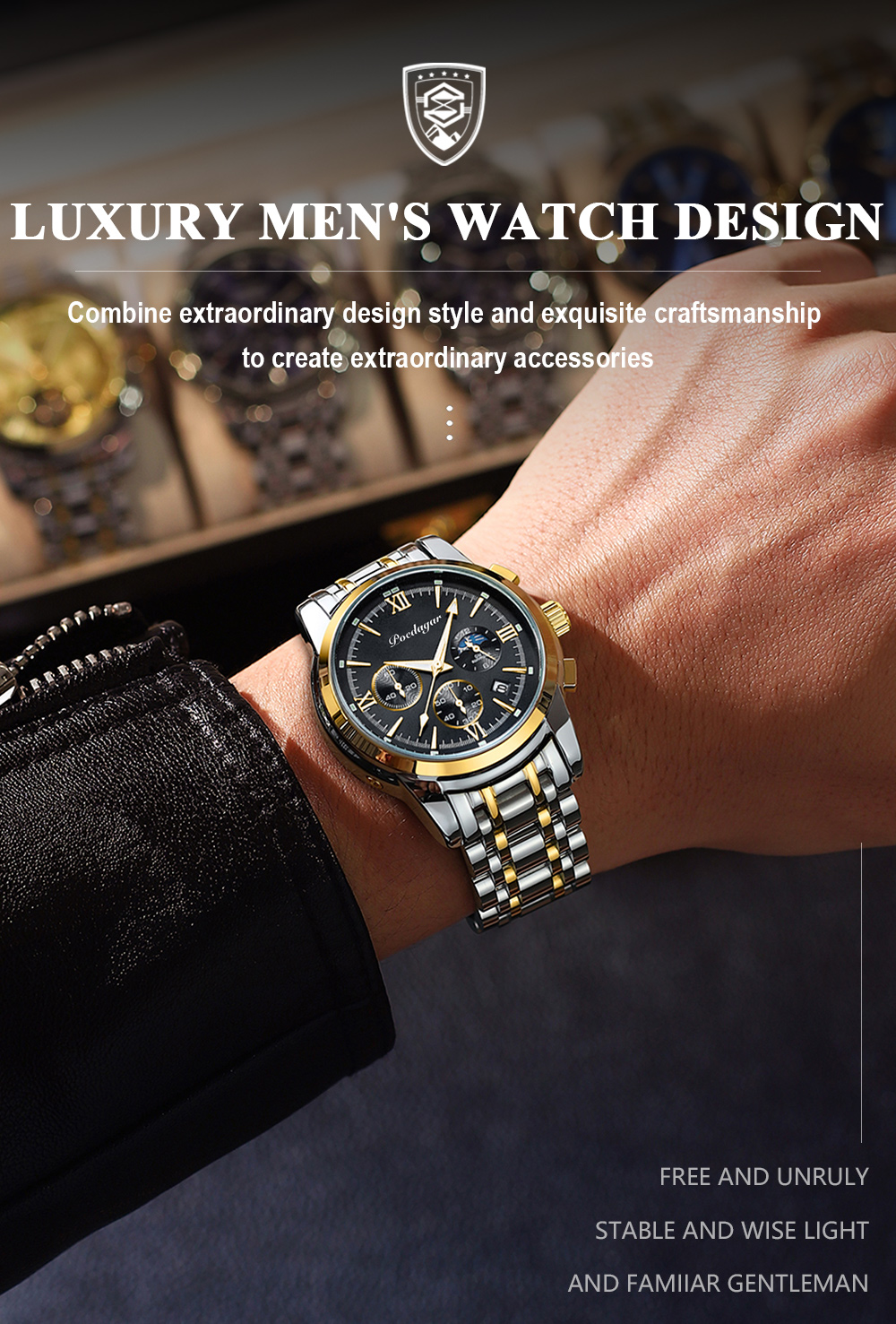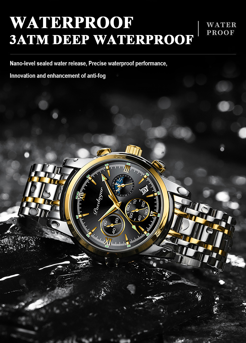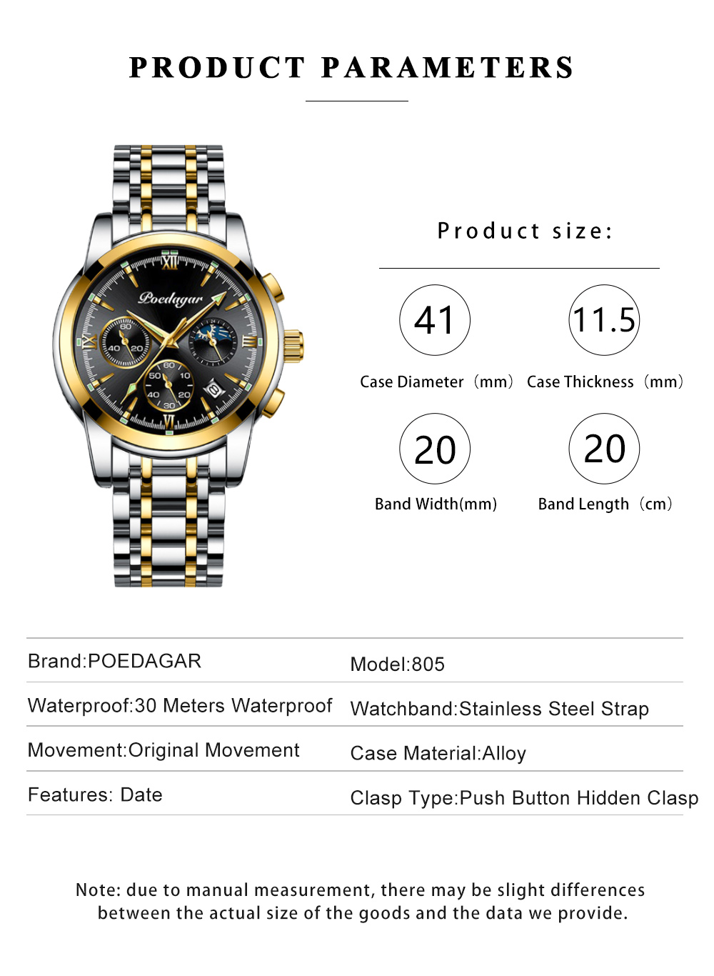 Poedagar PO805S Silver & Golden Two Tone Stainless Steel Chronograph Wrist Watch For Men - Black & Silver & Golden