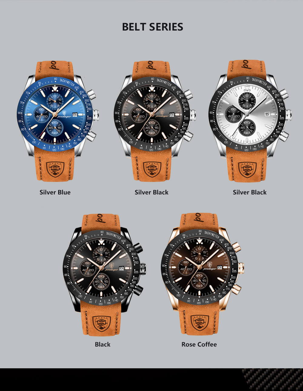Poedagar PO988L Brown PU Leather Chronograph Wrist Watch For Men - RoyalBlue & Brown