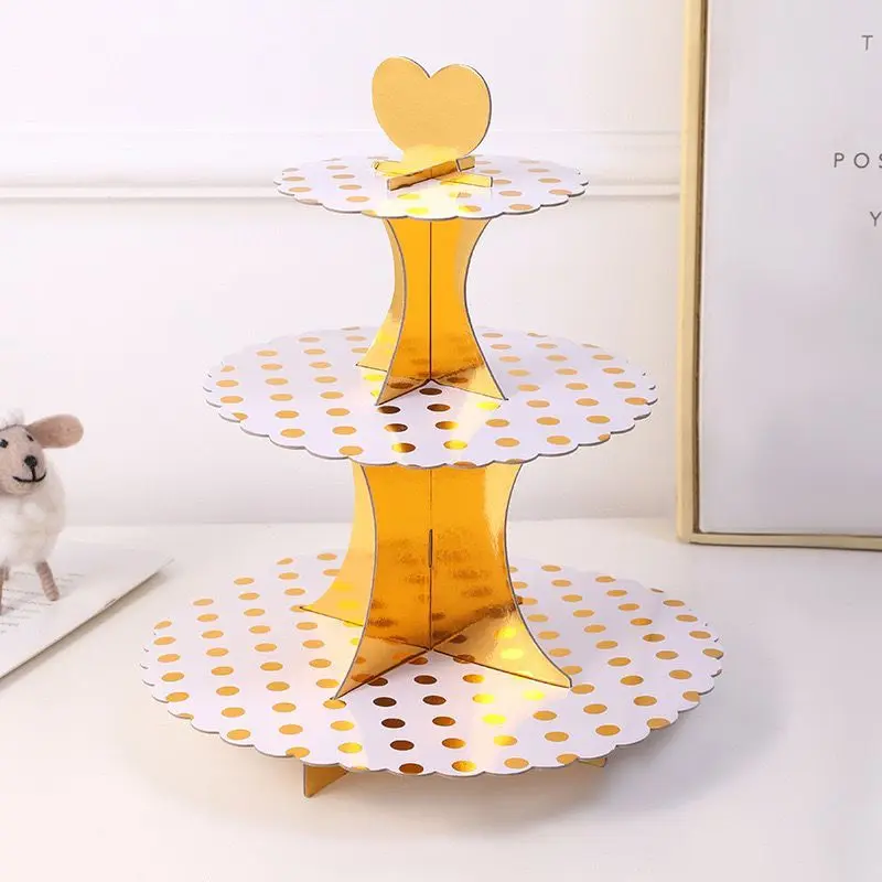 - Elegant design: Our three layer paper cake rack is made of paper material, providing long lasting durability and stability. Exquisite design paired with gold foil decoration adds a feel of brightness to any occasion.