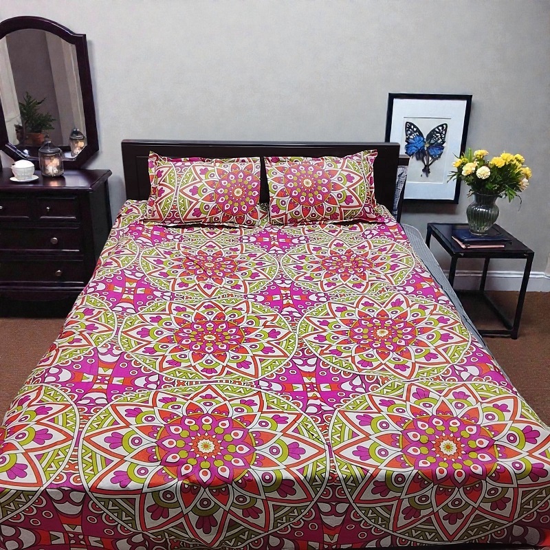 • 🛏️ Premium Cotton Printed Bedsheet – King Size