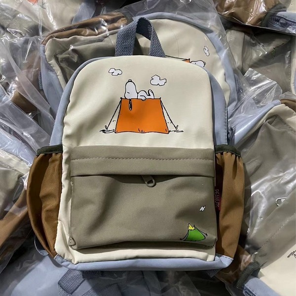 Forget loud, clashing colors—this backpack features a sophisticated cartoon "Camping Snoopy" print in a modern color palette of beige, olive green, and slate blue. It’s a "fashion-forward" choice that parents and kids will both love.