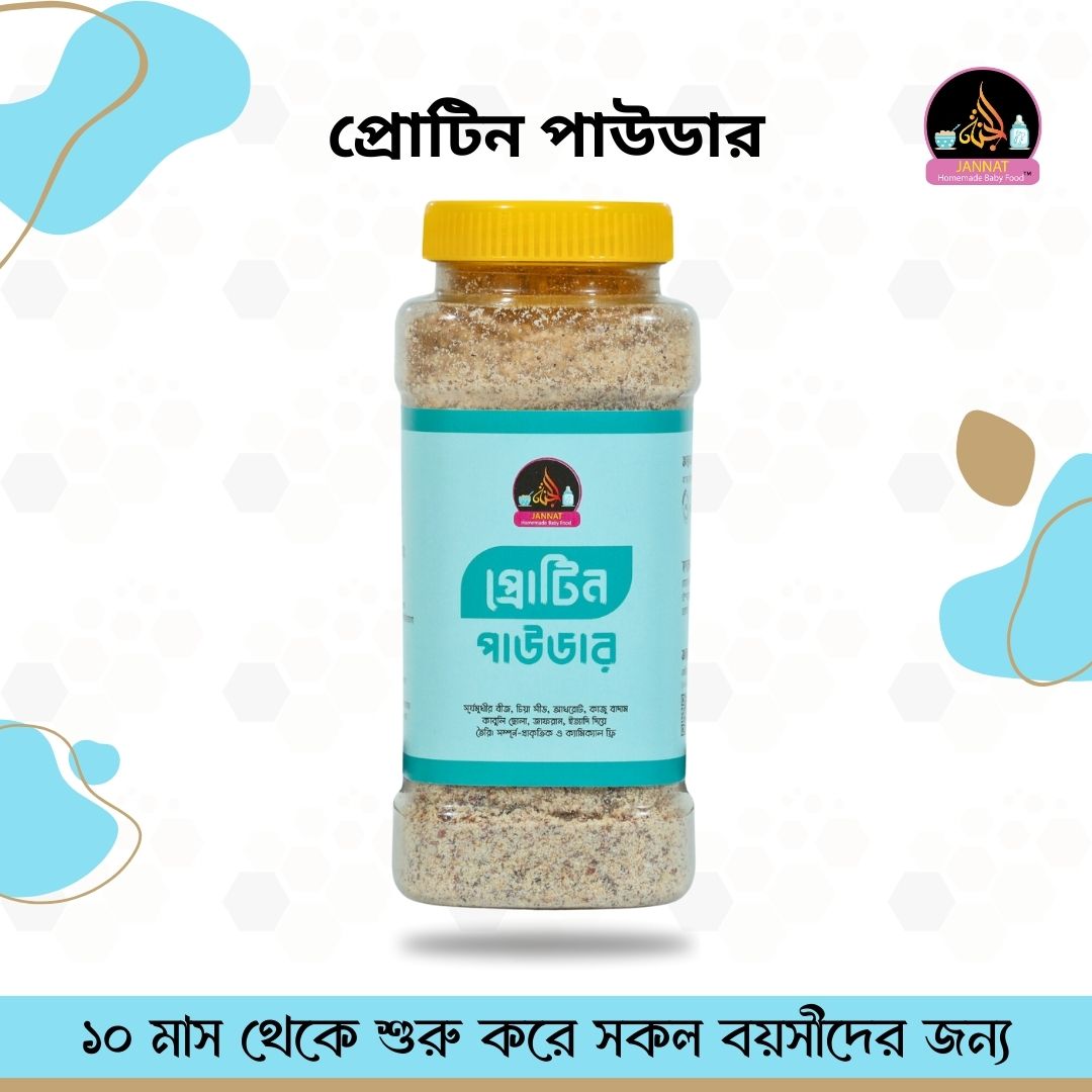 জান্নাত হোমমেড বেবি ফুড”নিয়ে এলো প্রোটিন পাউডার ব্রেইন বুস্টার। যা আপনার বাচ্চার ব্রেইন কে করবে শার্প আর একাগ্রতা পূর্ন্য আর মিটাবে প্রোটিনের ঘাটতি ইনশাআল্লাহ।