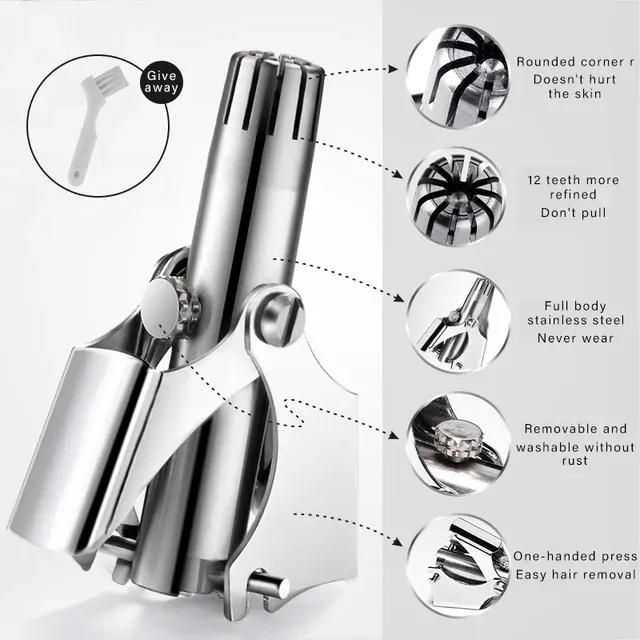 - 🎯 Ergonomic Manual Rotary Design — Gives you full control for safe and precise trimming of nose and ear hair.