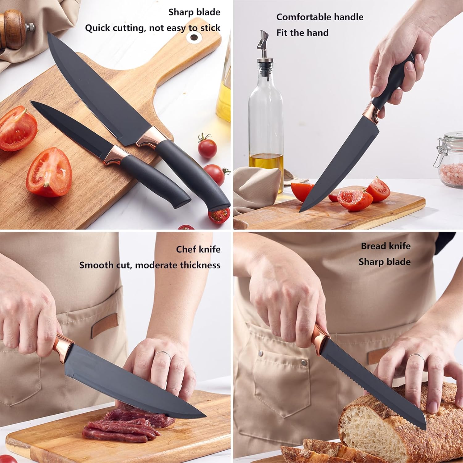 MEET ALL YOUR NEEDS --12Pcs silicone cooking utensil set can meet all the needs of your daily life, Package: Solid Spoon, Slotted Spoon, Slotted Turner, Pasta Server, Flexible Spatula, Basting Brush, Whisk, Tong, Round Spatula, Turner, Measuring Cups Spoons. More professional and easy cooking dishes, is a good companion for your kitchen.HEAT RESISTANT AND NON STICK -- This kitchen utensil set is newly upgraded for excellent heat resistance, with all silicone parts heat resistant to up to 446℉ (230℃) so you don't have to worry about melting and burning when you cook. It can be safe and secure to use on hot cookware, without worrying about scratching and damage, and at the same time, it will not make annoying noises during use.HIGH-QUALITY MATERIALS AND ERGONOMIC DESIGN -- With high-quality food grade silicone material, 100% safe for your family, BPA-free, can be used for any type of cooking, no reaction, more durable, no deformation, longer service life. The ergonomically designed wooden handle will not rust, easy to use, and prevents burns.LIGHTWEIGHT AND EASY TO CLEAN -- This spatula for nonstick cookware is very easy to store, compact design, will not take up too much space . Easy to clean, hanging dry after cleaning with water.STYLISH AND INTIMATE SERVICE -- The most stylish cooking gadgets set of 2020, can add color to your dishes,