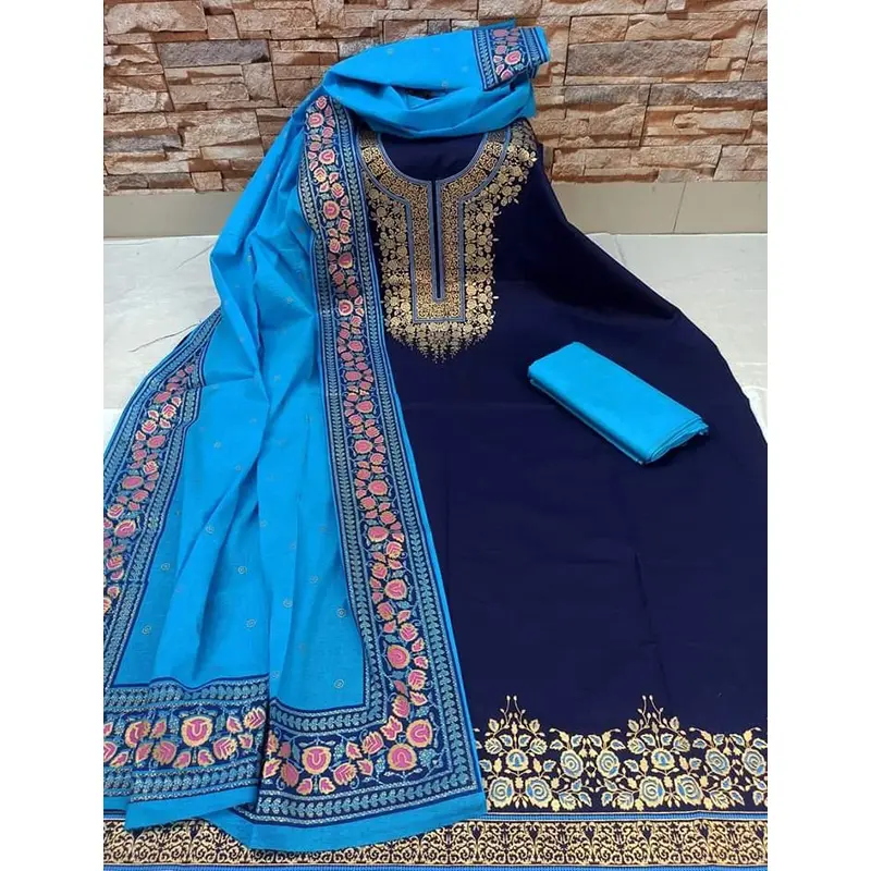 Premium Quality Unstitched Cotton Print Three Pieces for Women/ Girl - Multicolor - 56 Inch