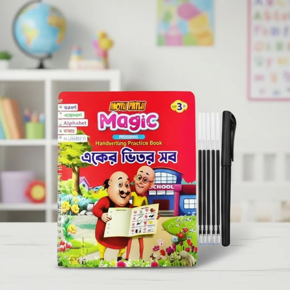 Introducing the Preschool Magic Hand Writing Practice Book with Magic Pen and 4 refills! This notebook is perfect for young learners who are just starting to develop their writing skills. With the included magic pen and refills, children can practice their handwriting in a fun and interactive way. The notebook is designed to help children learn to write letters and words with ease. It is a great tool for parents and teachers to use to help children develop their writing skills. The notebook is part of the Learning & Education category and is a must-have for any young learner.