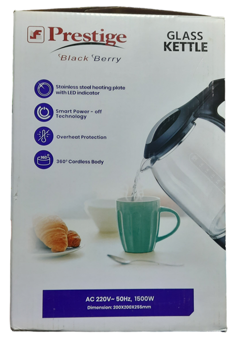 Make your kitchen smarter with the elegant and efficient Glass Kettle from Prestige/Kiam. With its modern design, LED indicator, and 360Β° rotational base, this kettle combines style, performance, and safety all in one. Ideal for tea lovers, busy mornings, or a quick coffee break!