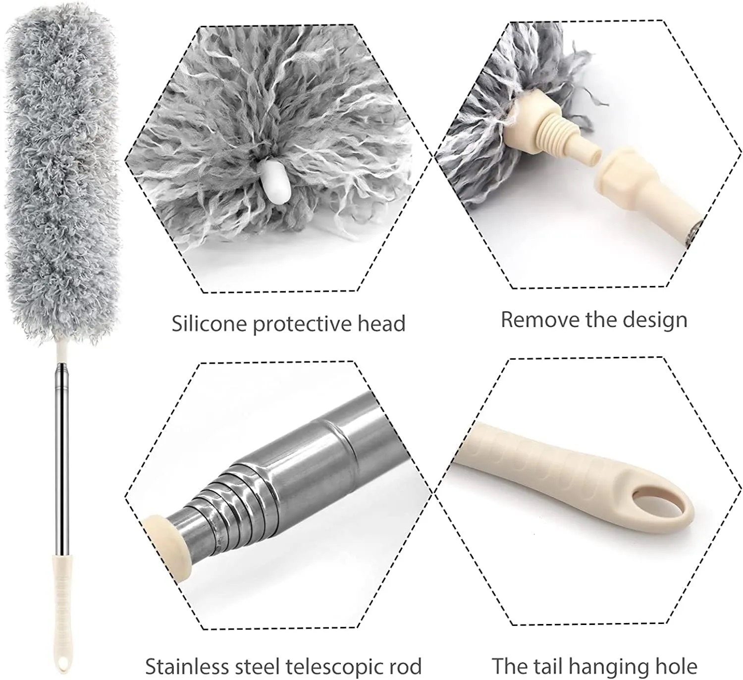 - Easy to use - The duster is lightweight, the head covers a large area and can be bent freely at a maximum of 360 degrees. It can erase the blind spot of the gap. It can also easily erase the dust. The extension rod is long and can clean ceilings.