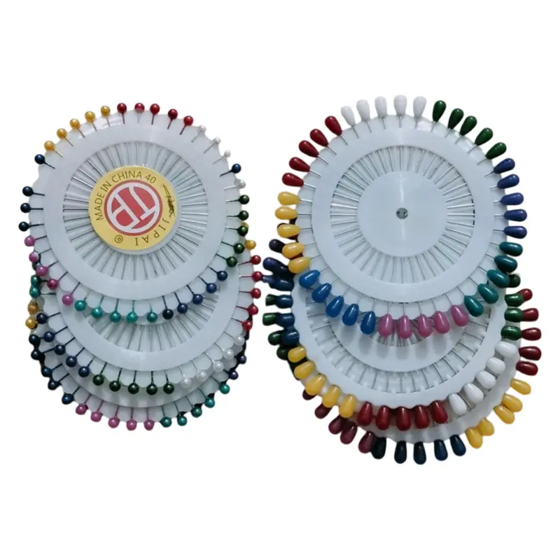 Each wheel contains 80 pins with a small pearl head in black and white.Approximate length of pin: 4 cm.