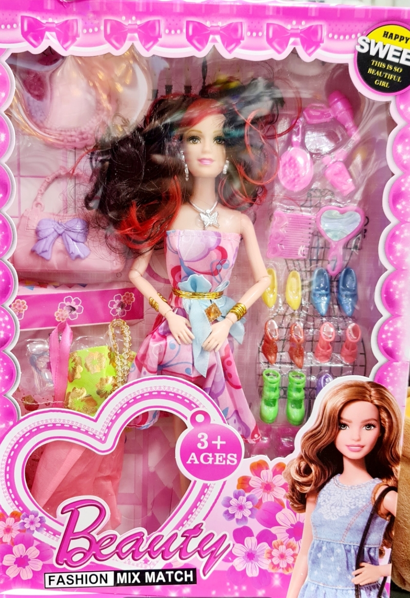 - extra shoes 16pc, two dress, one bag, one cap.hand and and lake moving Aadhar accessories mirror brush hair dry available