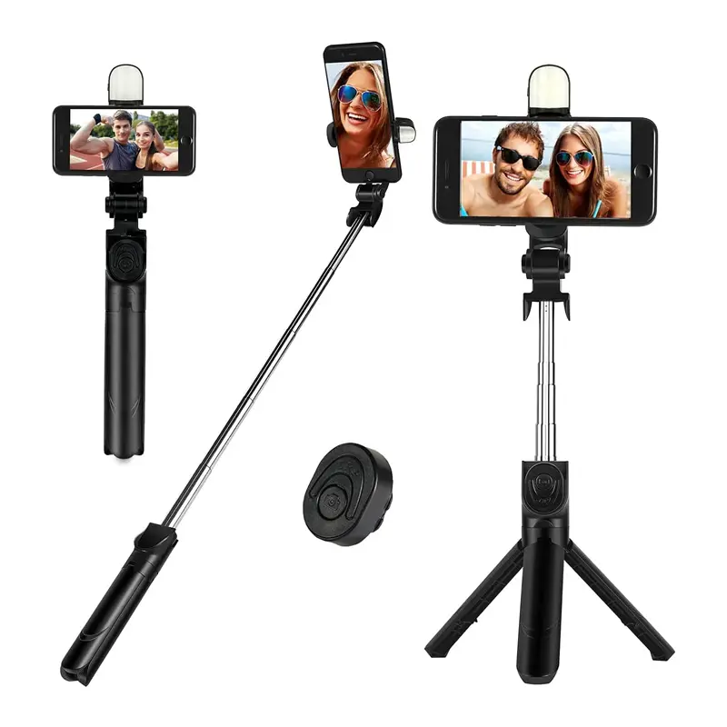 Features: Ultra Light Selfie Stick can be used to take selfies or capture your favorite videos. This multifunction tripod with a selfie stick weighs only 113 Grams. Rubber Grip: NoThis is a Bluetooth Enabled Selfie Stick for Mobile Phones. Just click the wireless remote to capture the photoUse this Selfie Stand to Watch your favorite videos or conduct Online MeetingsThis Selfie Sticks for All phone is compatible with all smartphones of 4 Inches to 6.5 Inches dimensions.Bluetooth Selfie Stick is provided with a tiny wireless remote that can be connected to your phone and can be used up to about 15 Ft.WeCool Mobile Selfie Stick is compact and foldable. It can be extended up to 60 Cms longThe selfie Stand for Mobile Phones can be Rotated to 360 degrees + 220 Degrees Angular Adjustment.Specifications:Colour: BlackMaterial: metal shell + aluminum alloy tube Largeload-bearing capacity: 500gExtension length: 19-90 cmNumber of pole sections: 5 segmentsBluetooth connection distance: ≤5 metersThree kinds of light intensity: cold light/neutral light/warm lightCompatible mobile phones: Applicable to common mobile phonesModel: K07Main Material- Stainless steelMount holder- 2.9-4.0 inchRetracted Length- 7.64 inchExtended Length- 27.6 inchCompatible with: iOS, Android.7 days replacement warranty Package Included:1 x Selfie Stick Tripod1 x Bluetooth remote control1 x light.
