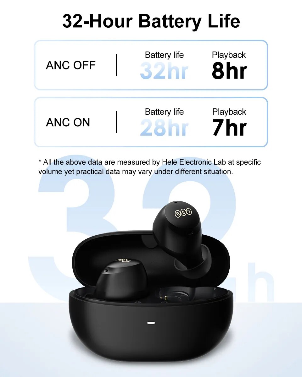 - 32 Hrs Playtime & USB-C Charge–With ANC off, charging case can ensure you to enjoy up to 32 hours of playback.