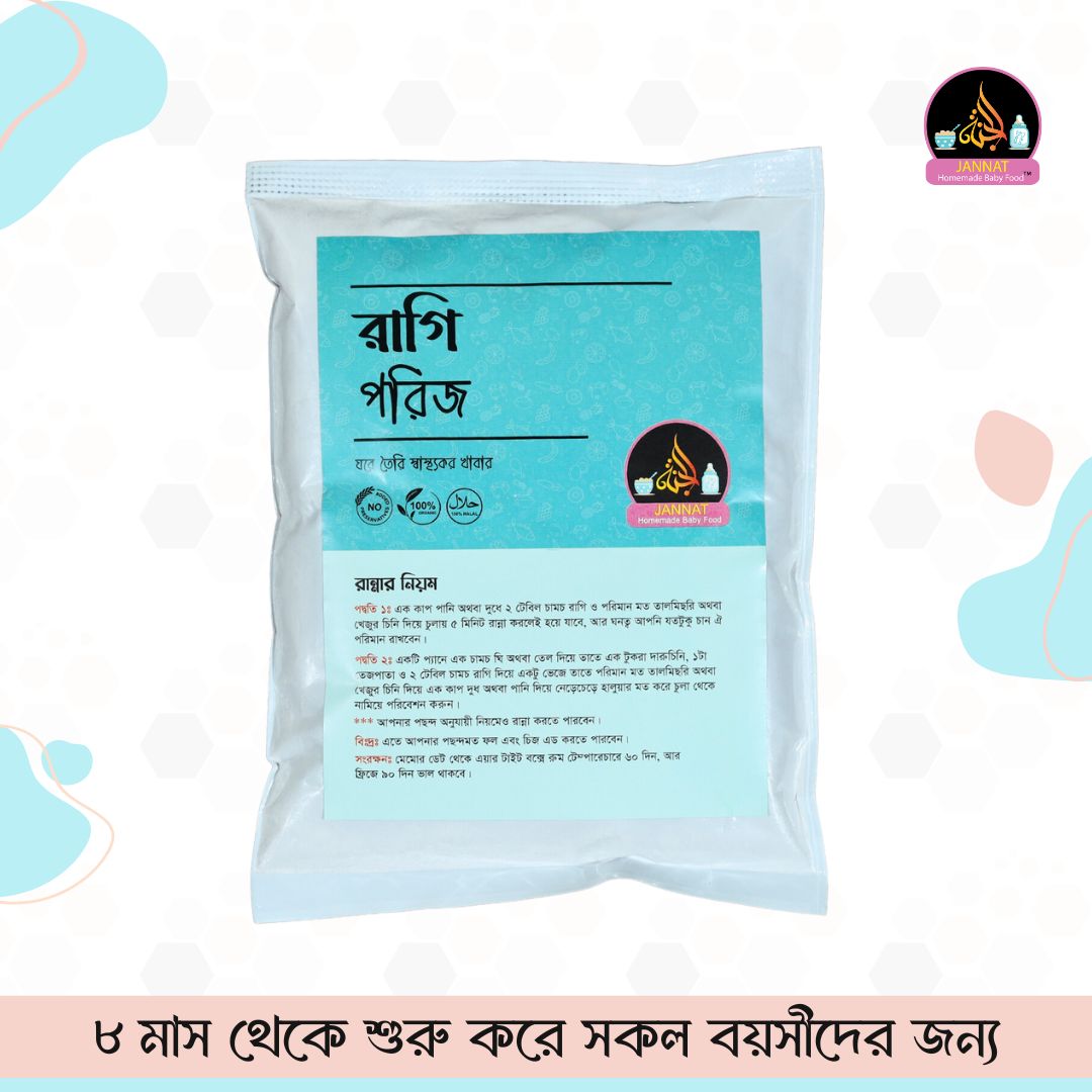 জান্নাত বেবিফুড-এ, আমরা আপনার সন্তানের সুস্থতাকে অগ্রাধিকার দিই। আমাদের পণ্যগুলি প্রিজারভেটিভ বা কৃত্রিম রং ছাড়াই ঘরোয়া পদ্ধতিতে প্রস্তুত করা হয়। যারা একটি নিরাপদ এবং রাসায়নিক মুক্ত বিকল্প খাদ্য খুজছেন তার রাগি পরিজ খুব সহজেই বাচ্চার খাদ্যতালিকায় এড করতে পারেন।