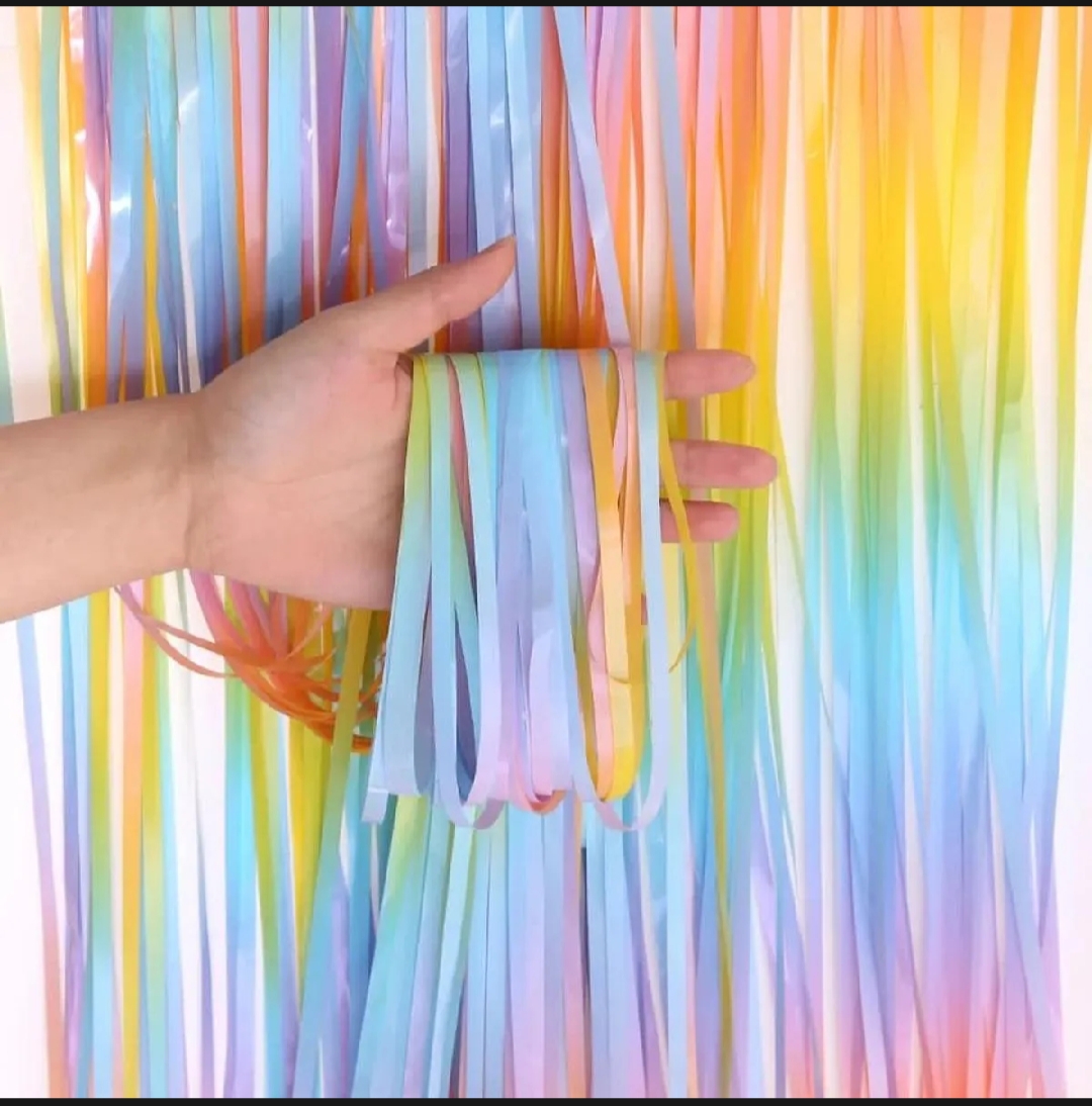 - Rainbow Gradient Colorful Metallic Foil Fringe Curtain Pastel Candy Colored Metallic Tinsel Curtain Backdrop for Birthday Party Baby Shower Party Decoration