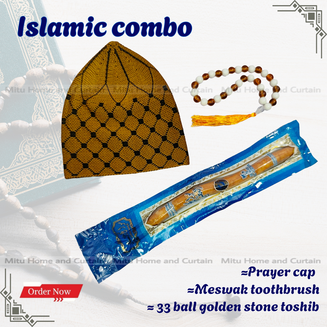 Ramadan Islamic Combo Set Tupi 33 ball Golden Stone tosbih Meswak