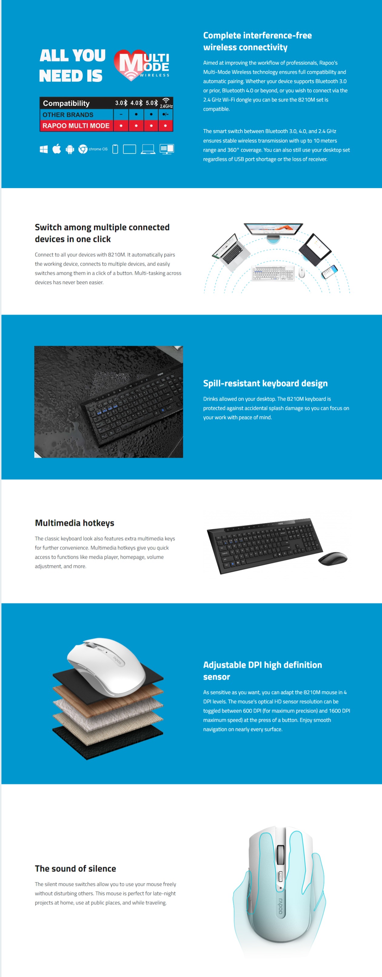 - Reliable multi-mode wireless connection: connect via Bluetooth 3.0, 4.0 and 2.4 GHz