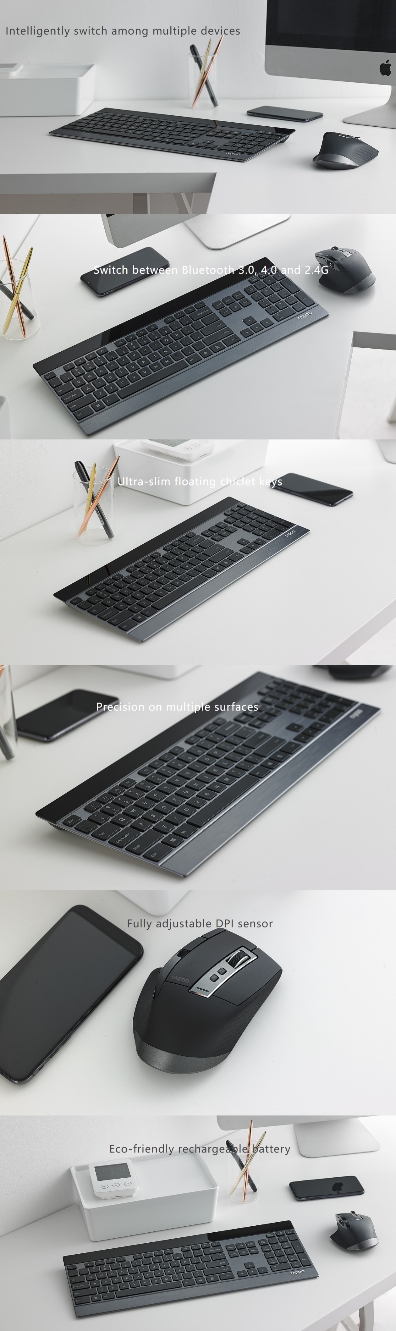 - Switch between Bluetooth 3.0, 4.0 and 2.4G