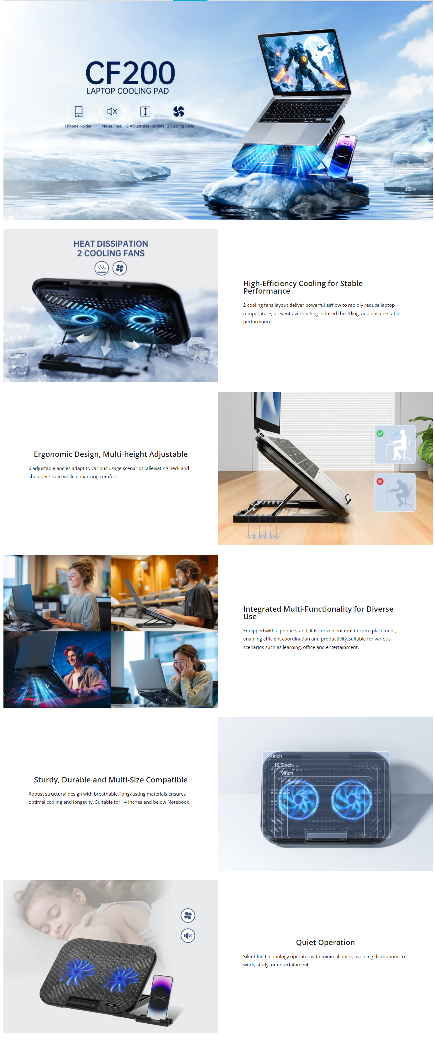 High-Efficiency Cooling: Two powerful fans quickly reduce laptop heat to prevent throttling and maintain stable performance.