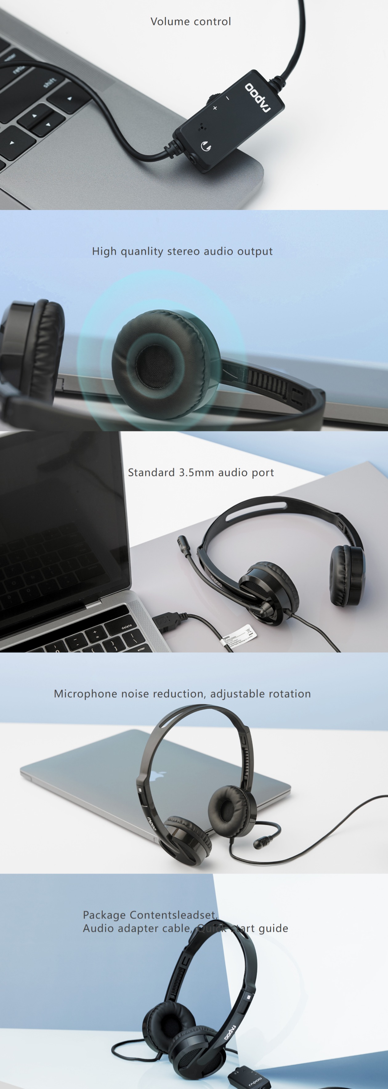 - Package Contentsleadset, Audio adapter cable, Quick start guide