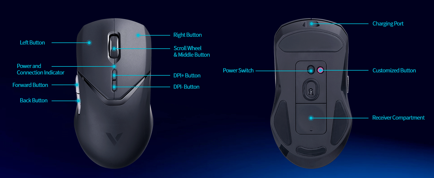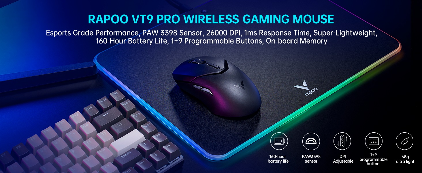 - Rapoo V+WIRELESS wireless gaming technology, 1ms response time, 10m+ transmission range, and 3 anti-interference modes
