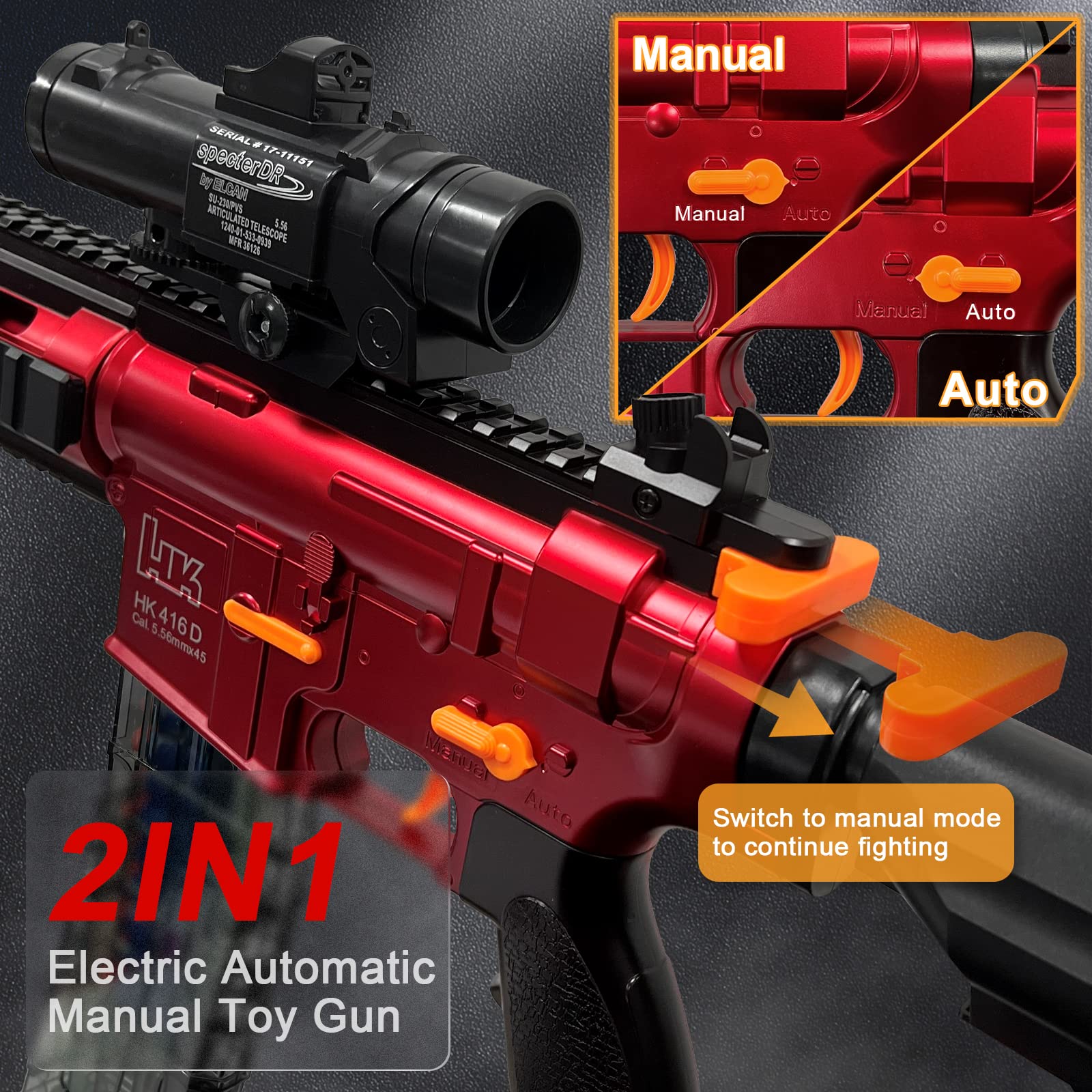 The Automatic Toy Gun M416 offers a thrilling 2-in-1 shooting experience with both manual and automatic modes. It comes equipped with 120 soft foam darts, a rechargeable battery, and a dart window for real-time monitoring. Perfect for kids aged 8-12, this toy gun promotes hand-eye coordination and is ideal for various play settings, making it a fantastic gift for young shooting enthusiasts.