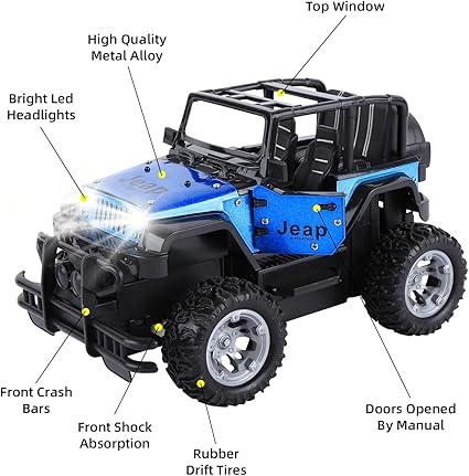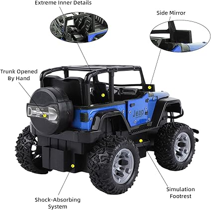 - High gloss finish makes this off road RC car vehicle truck crawler beautiful and realistic. It's not only fast, It is also designed after the iconic Jeep in every detail. Shock absorption, differential mechanism, rims wrapped in grip tires, steering wheel, rear view mirror, realistic dashboard and etc.This considerate replica is rightfully a good helper for kids or future engineers to understand the actual car.