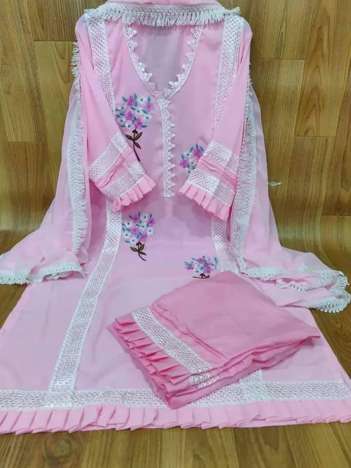 Readymade Stich Unique collection Pakistani Zaira Dress Diamond Georgette Fabric Pink Color Free Size Salwar Kameez Suits For Women - Pink