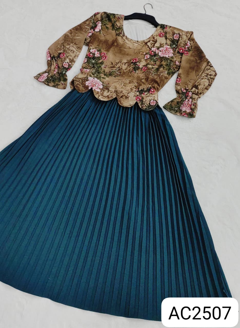 Readymade Unique Western Fashion Ladis Long Gown Georgette style dress for women - See green