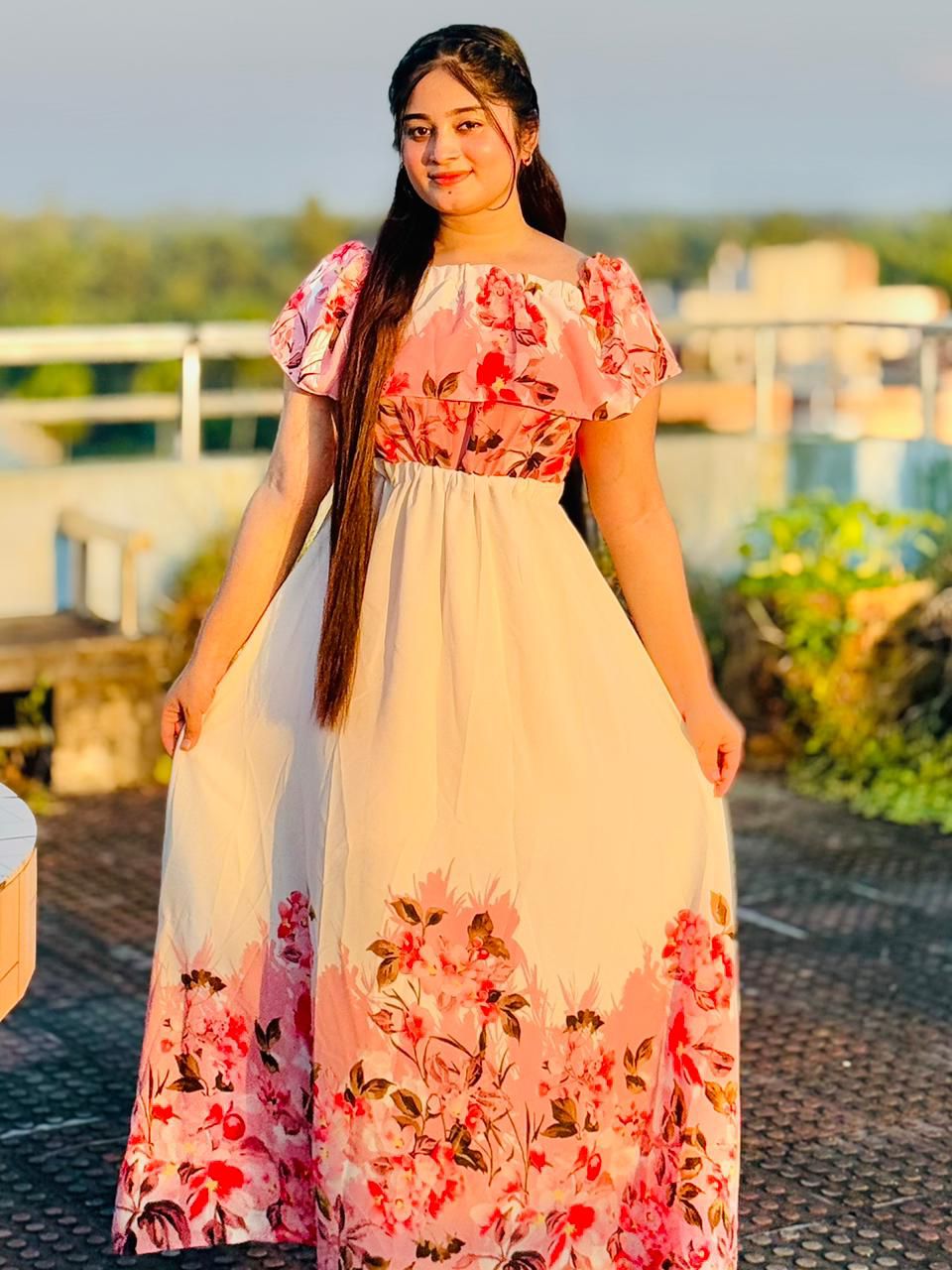 Readymade Unique Western Fashion Ladis Long Marmaid gown Fabric Missouri Georgette style dress for women - White