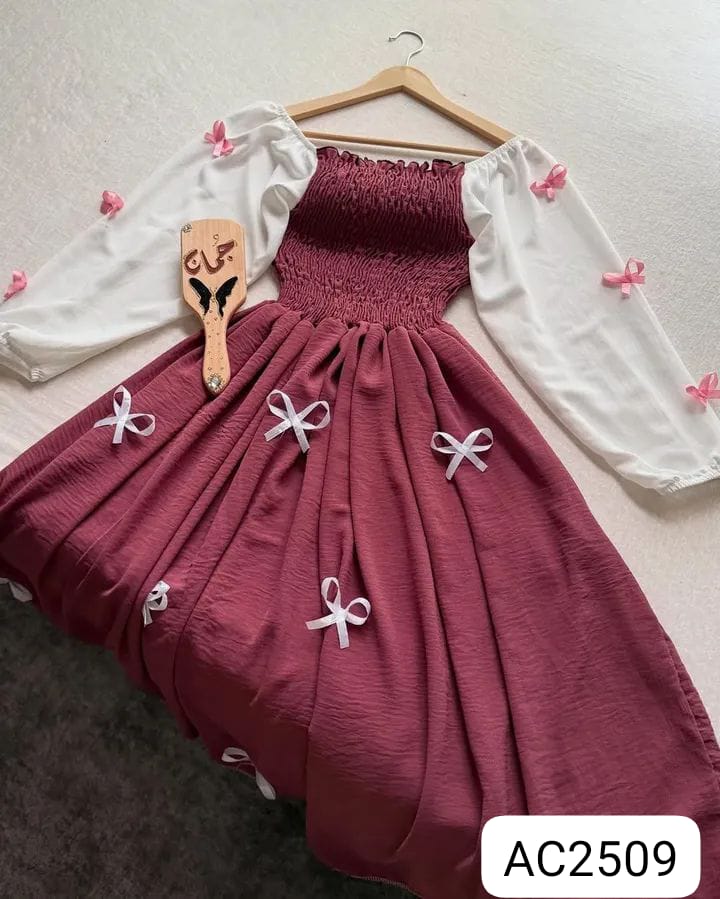 Readymade Unique Western Fashion Ladis smoky Gown Georgette style dress for women - Pink