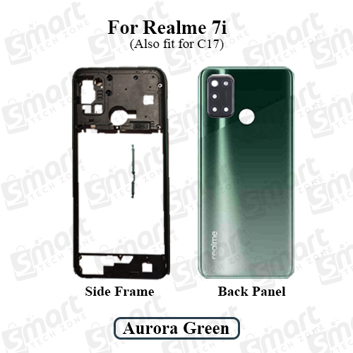 Restore the full structure and sleek look of your Realme 7i or Realme C17 (RMX2103) with this complete Replacement Kit. It includes the Middle Bezel Frame, Back Panel Cover, Rear Camera Glass, and Side Button Set—everything you need for a reliable, factory-style repair.