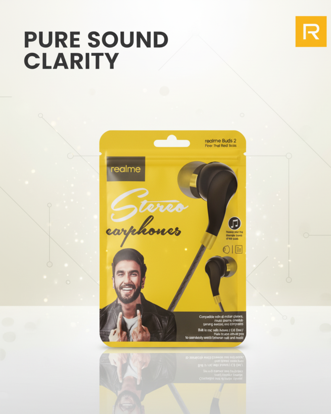 Experience superior audio clarity with the Realme Stereo Earphone with High Definition Sound Quality. Designed for music lovers and multitaskers, these earphones provide a rich stereo sound with deep bass and crisp highs.