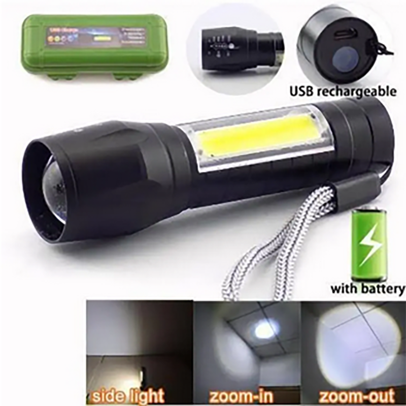 Rechargeable Flashlight Torch LED USB Portable Torches 3 Modes Mini Camping Lighting