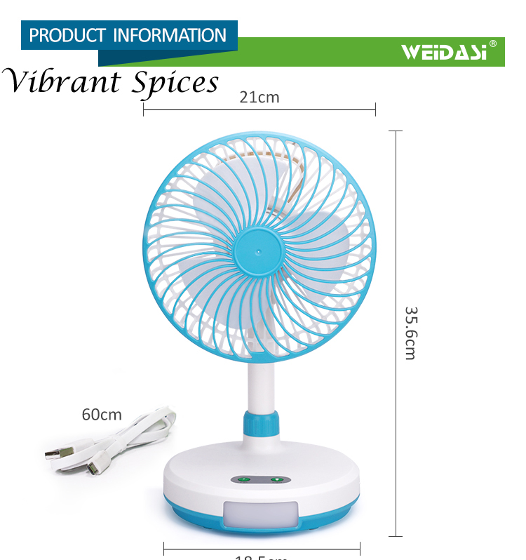 - Do not use a charger that the voltage is too low or too high to charge. When the fan is working,