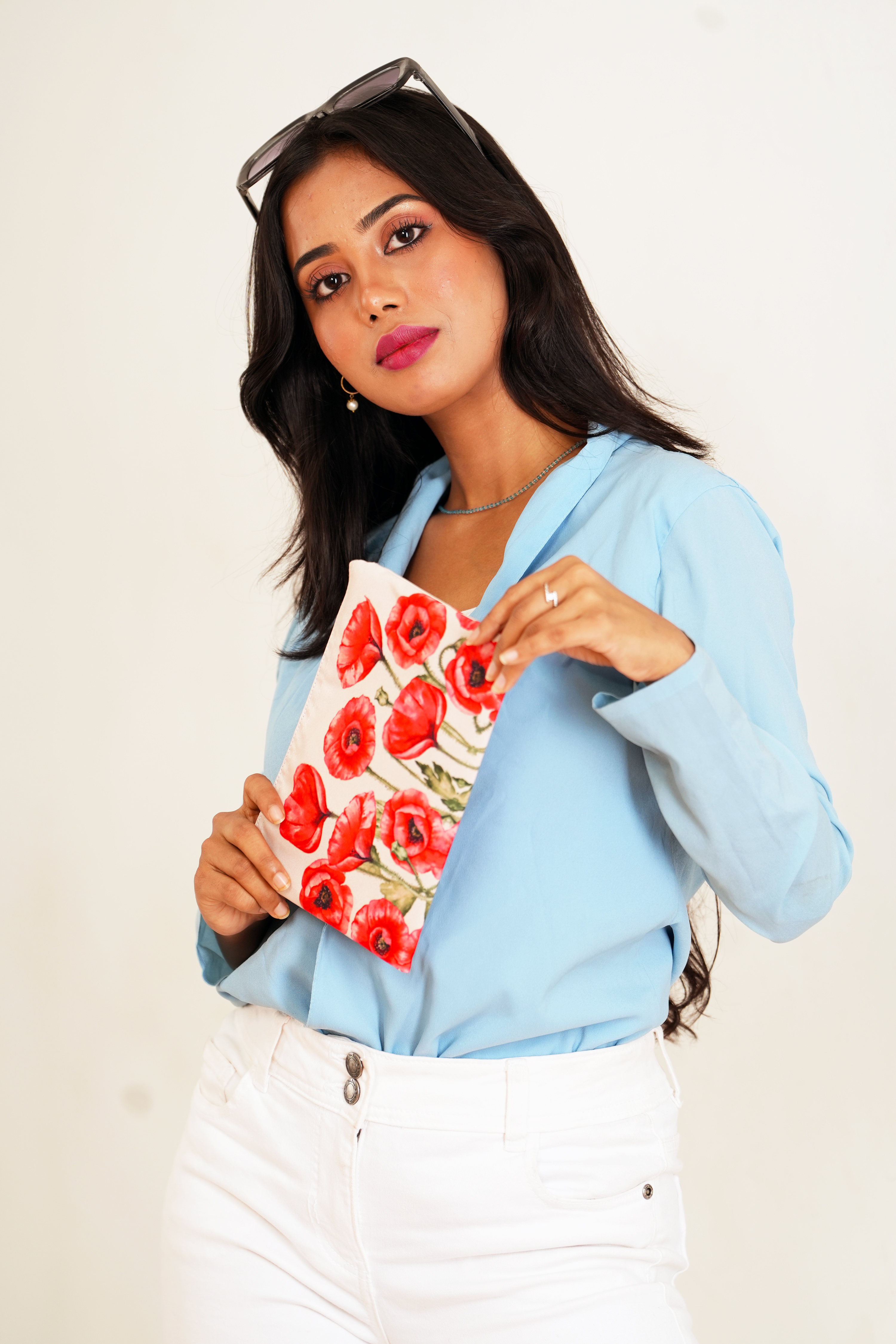 Introducing our Red Poppy Flower Printed Pouch Bag, a perfect blend of style, versatility, and functionality to enhance your daily routine. This pouch bag isn't just a fashion statement; it's a practical accessory that will help you stay organized and chic at the same time.