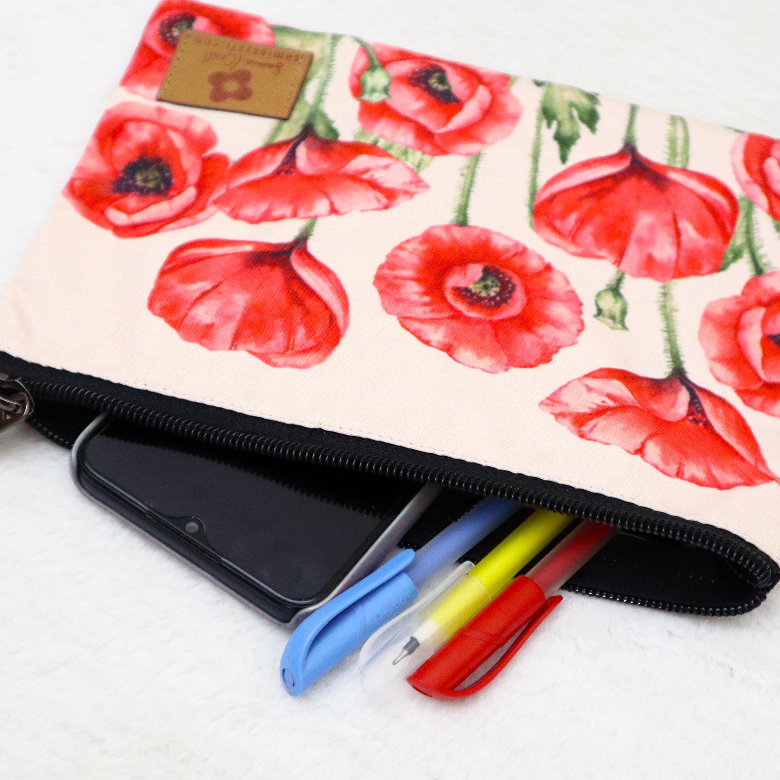 Elevate Your Style with Poppy Elegance: The eye-catching red poppy flower print adds a touch of elegance to your day. Whether you're heading to the office, running errands, or going out for the evening, this pouch bag complements your outfit with its vibrant and charming design.
