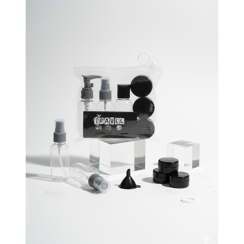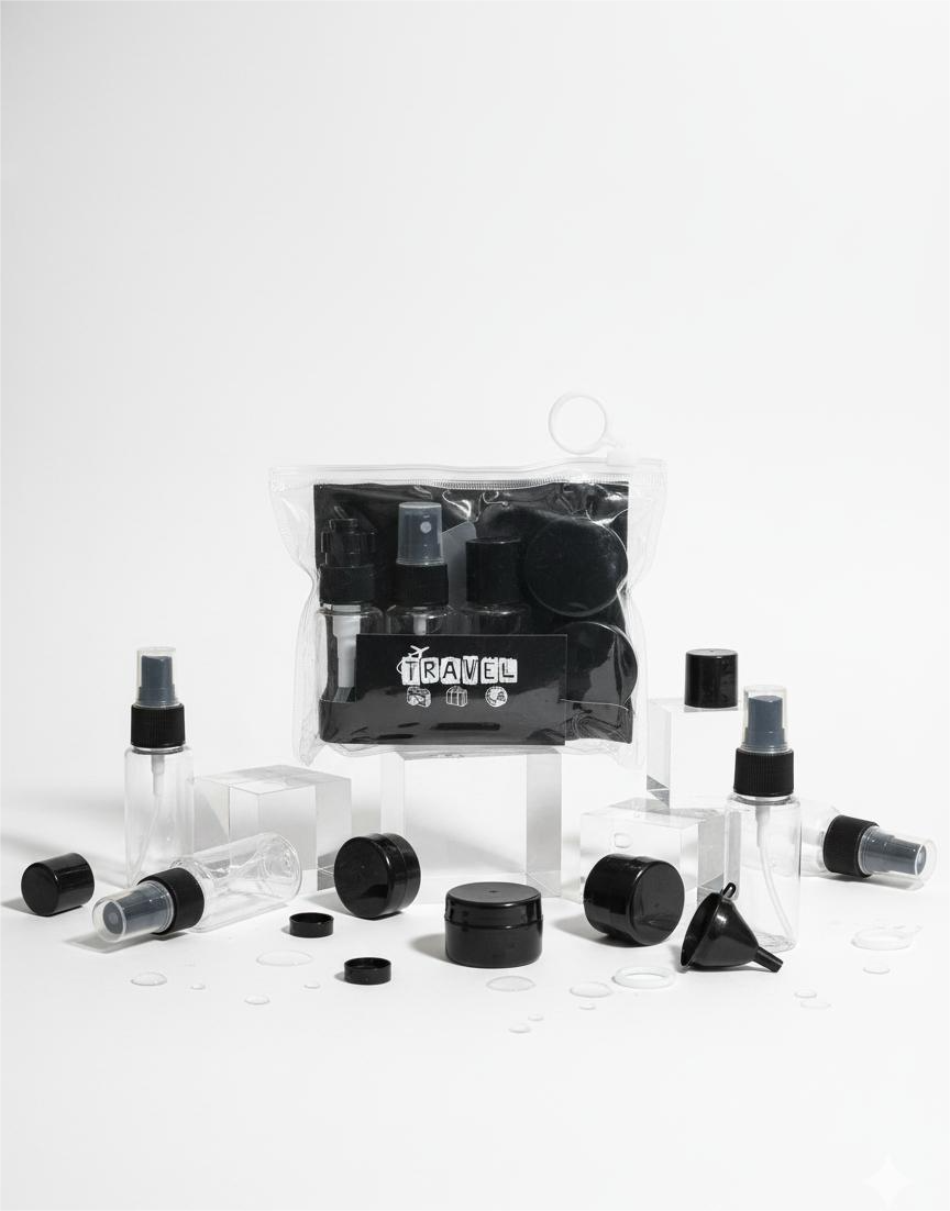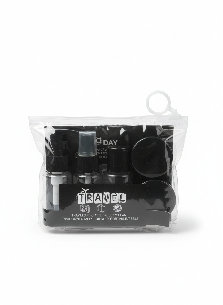 Whether you’re going on a business trip or a vacation, this black travel-size cosmetic bottle set keeps your products neatly packed and spill-free. Perfect for those who love convenience and organization on the go.