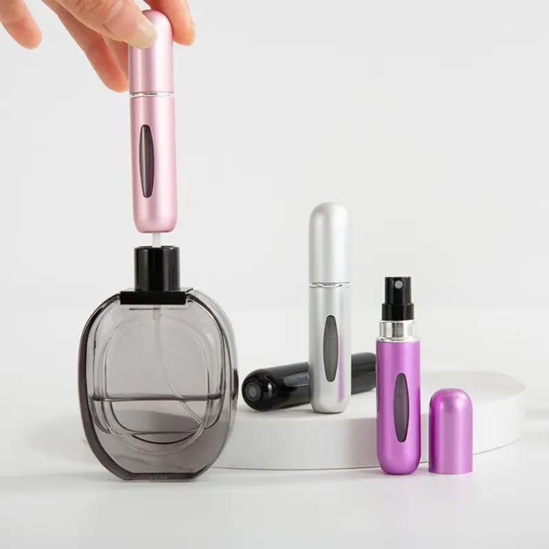 Insert the atomiser vertically on the perfume bottle tube, press up and down repeatedly until it refills becomes,