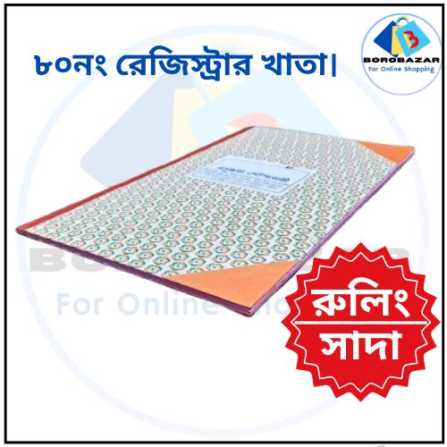 The Register khata. Number : 80 No.Page : (64:page net),Register Type : Rolling / White.Paper Gsm: 50Gsm.Register Size : 12" × 7.5", Register Quality : Best Quality, Best Binding.