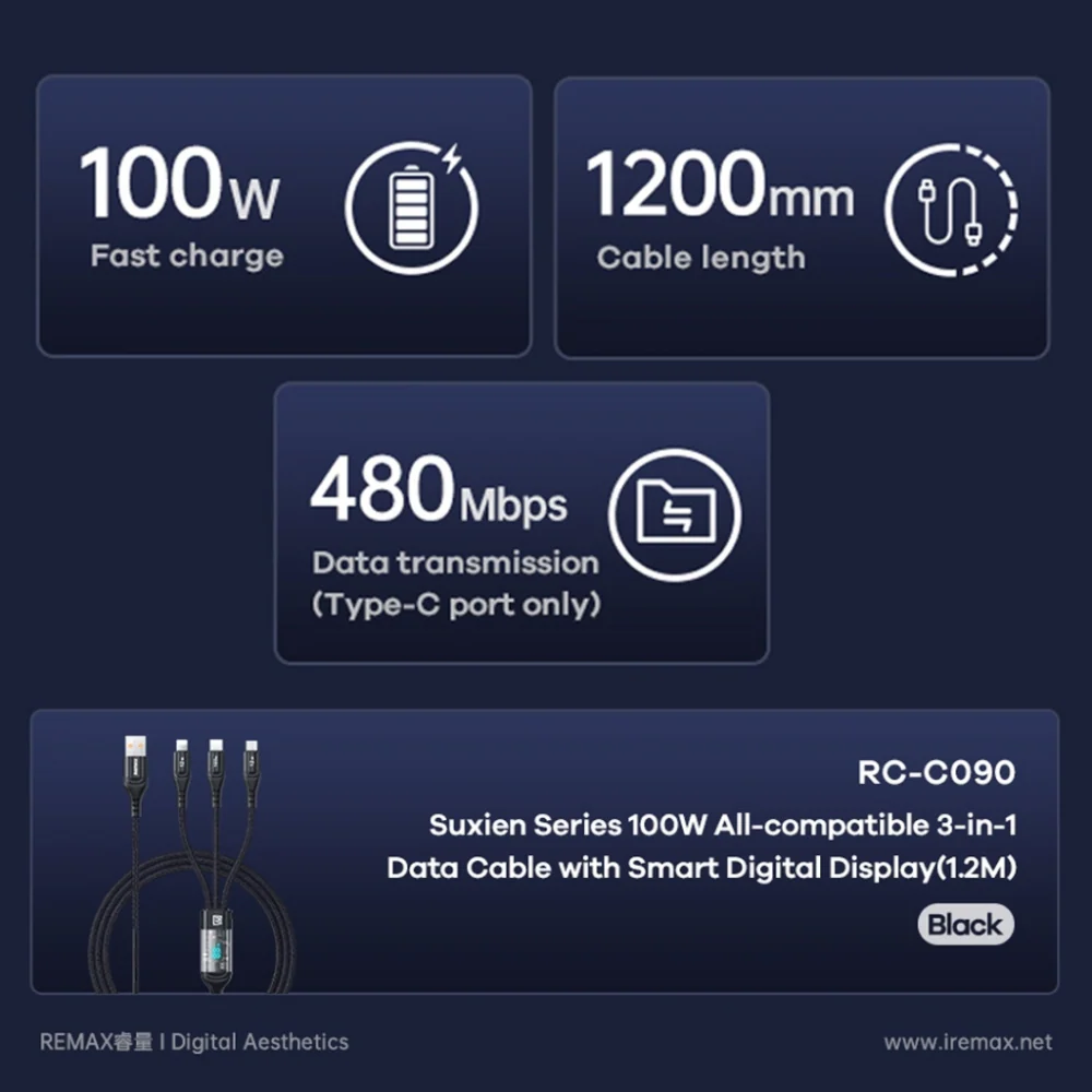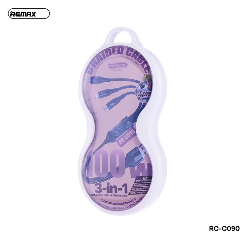 REMAX RC-C090 Suxien Series 100W All Compatible 3 In 1 Data Cable With Smart Digital Display