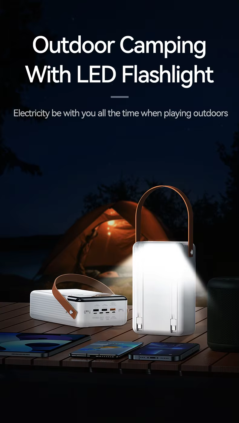Function - Power button one click for power on. Display lamp shows the current power. Press Power button 3 second for power off.Start charging plug in apower bank and charge up the power bank with the digital tube flashing 'number % (from 0 to 100). After a full charge , the display '100% remains on and you can stop the Charging . Included in the power bank The cable can be easily removed and used.Type-C Cable & USB 3 output has quick Charge . the Power bank has a LED flashlight. For LED flashlight will light up or light off , press the power Button 2 Click. The Power button press one click to change four light modes . It has handle which easy to carry.
